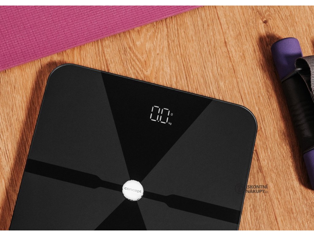 Chytrá osobní váha Concept VO5100 Perfect Health vám pomůže sledovat vaše zdraví jednoduše a přehledně. Kromě samotné tělesné hmotnosti poskytuje i detailní analýzu složení těla, díky které získáte lepší představu o své kondici a pokrocích. Váha má nosnost až 180 kg a měří s přesností na 100 g. Elegantní minimalistické provedení v kombinaci černé a tmavě modré skleněné desky o tloušťce 5 mm a nízká konstrukce z ní dělají stylový doplněk, který přirozeně zapadne do každé koupelny či interiéru.