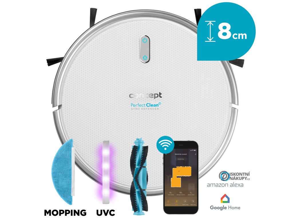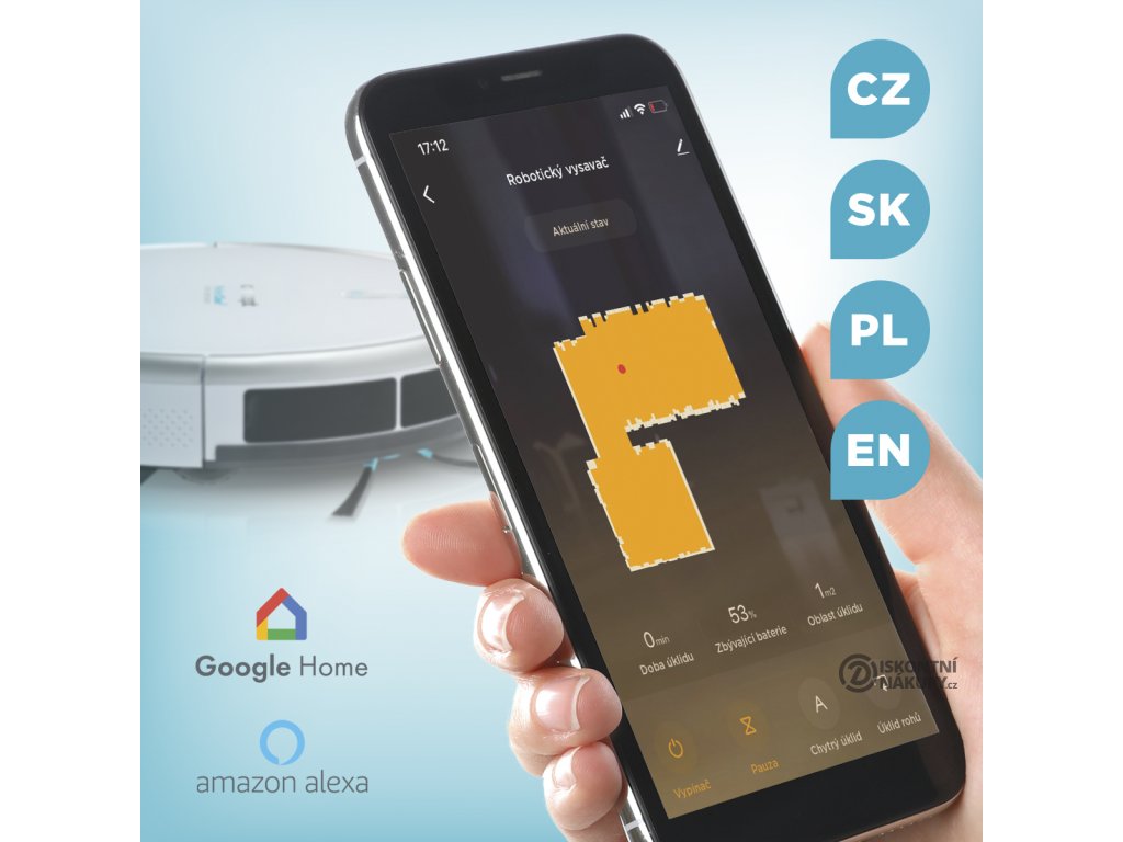 Robota je možné ovládat přes aplikaci Concept Home, která je v češtině a zdarma dostupná pro iOS a Android. Pomocí aplikace můžete naplánovat úklid kdykoliv a odkudkoliv a zároveň v reálném čase sledovat, kolik toho uklidil a kde se zrovna nachází. I když nebudete zrovna doma, úklid domácnosti budete mít neustále pod kontrolou. Přes domácího asistenta Alexu nebo Google Home můžete vysavač ovládat i hlasem. A pokud nejste fanoušci aplikací nebo nemáte chytrý telefon, můžete ho plně ovládat také pomocí dálkového ovladače.