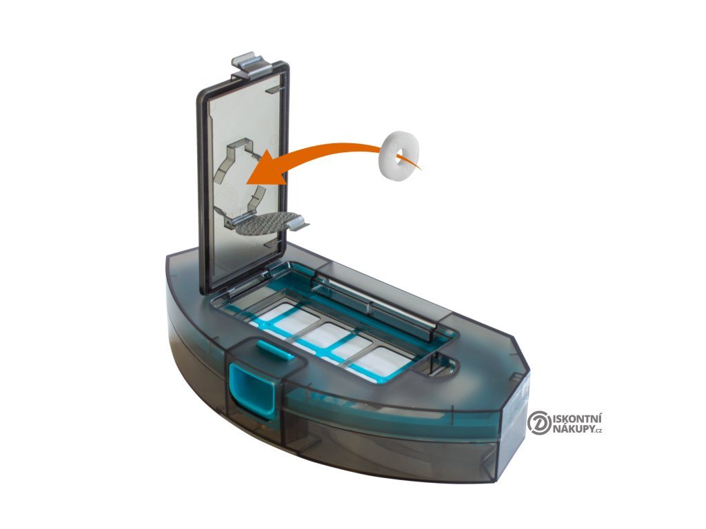 Vysavač VR2020 je vybaven chytře vymyšlenou přihrádkou na umístění aroma tablety. Ta během vysávání eliminuje nepříjemné pachy z usazeného prachu, místnost příjemně provoní a vám dodá pocit větší čistoty. Aroma tableta není součástí balení. Doporučujeme vybírat vůně do vysavačů tuhé konzistence (vonné tyčinky, kolečka, granulované vůně v uzavřených sáčcích apod.).