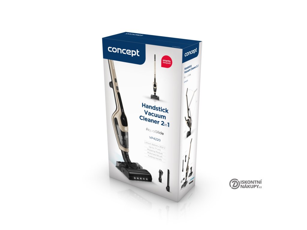 Tyčový vysavač 3 v 1 Aquaglide 28,8 V Concept VP4220 je kombinací tyčového vysavače, ručního vysavače a mopu. Disponuje dlouhou výdrží až 77 minut, 3 režimy vysávání, motorizovaným turbokartáčem, LED osvělením, sklopnou rukojení a praktickým nabíjecím stojanem pro uskladnění vysavače včetně příslušenství.