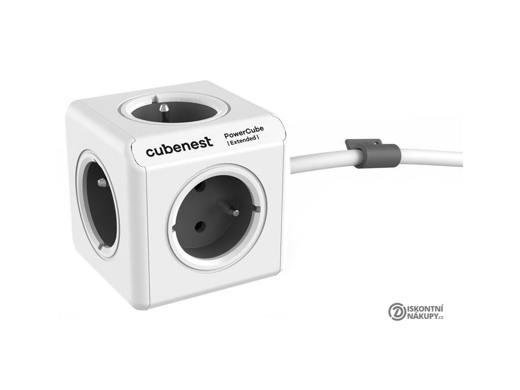 Cubenest PowerCube Extended 1,5m bílo-šedáCubenest PowerCube Extended je unikátní kombinací pěti zásuvek a 1,5m prodlužovacího kabelu v kompaktním a stylovém těle pro napájení vašich zařízení. Promyšlené rozmístění zásuvek zajišťuje, že se nabíječky nebo objemné adaptéry navzájem neblokují.