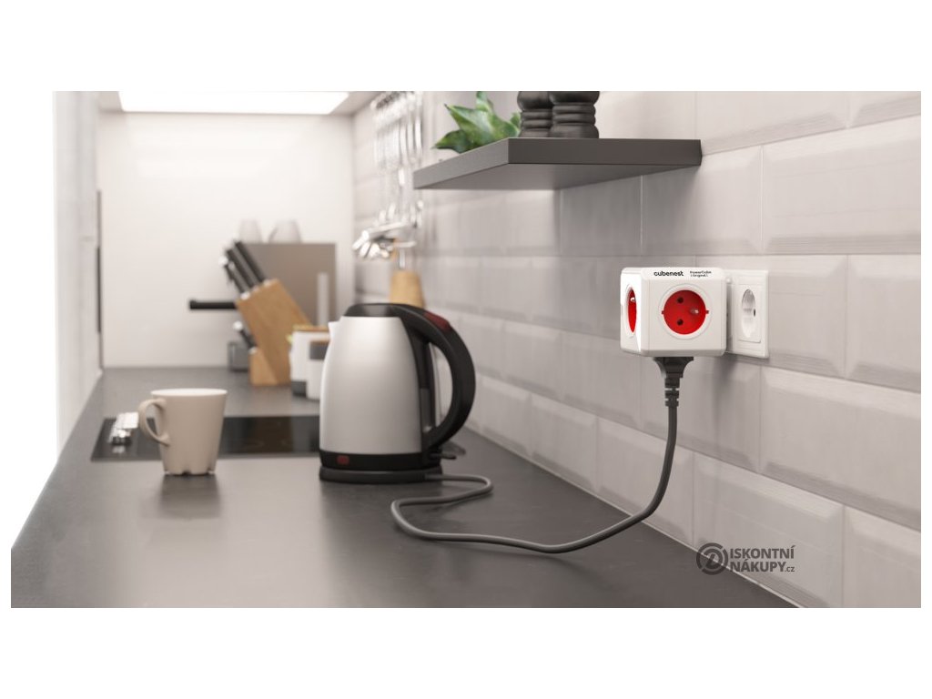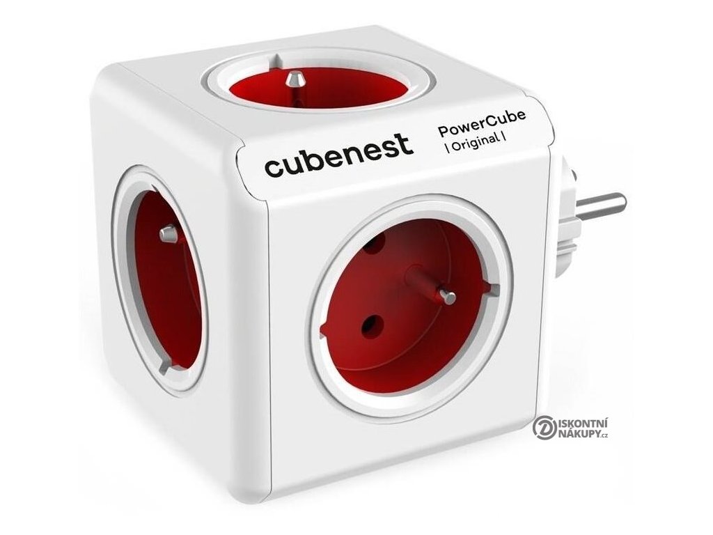Cubenest Powercube Original, 5× zásuvka, bílá/červená, dětská pojistka, uzemnění, max. 16A/250V~3680W/50-60Hz PC120RD