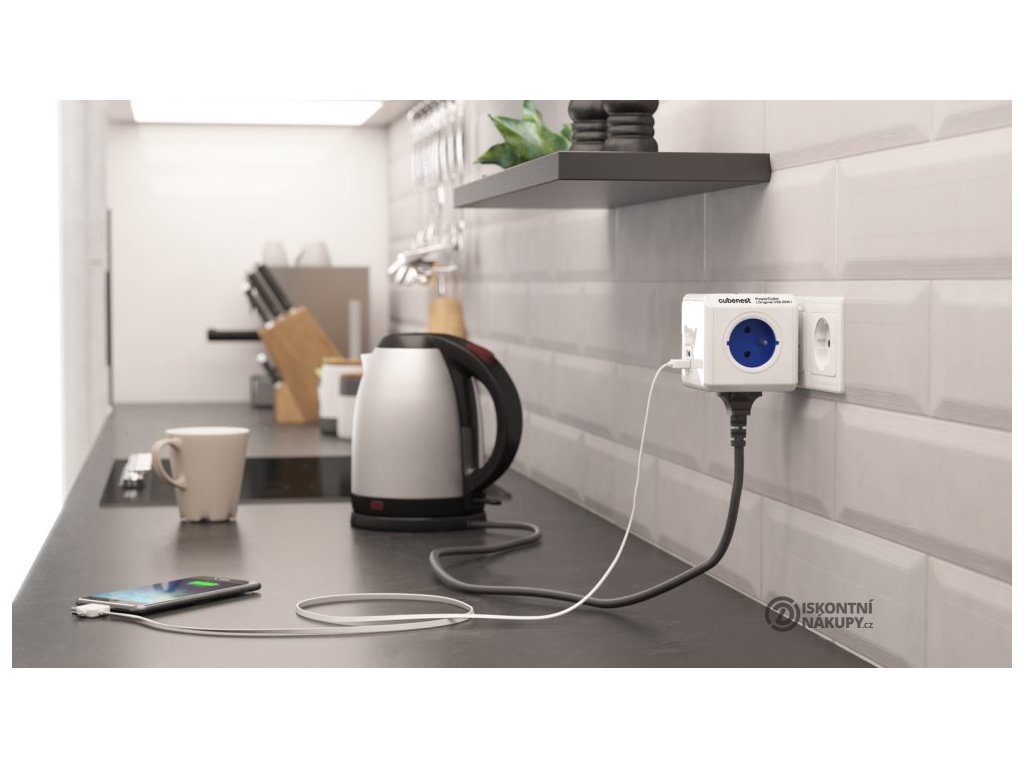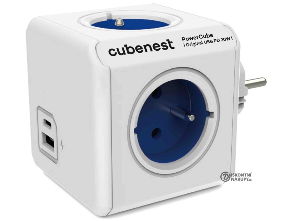 Cubenest Powercube Original USB PD 20W, A+C, 4× zásuvka, bílá/modrá, dětská pojistka, uzemnění, max. 16A/250V~3680W PC220BL