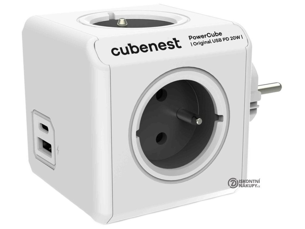 Cubenest Powercube Original USB PD 20W, A+C, 4× zásuvka, bílá/šedá, dětská pojistka, uzemnění, max. 16A/250V~3680W PC220GY