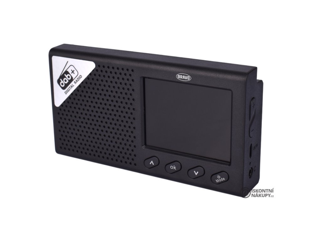 Šikovné a kompaktní digitální DAB rádio Bravo B-4905. Vydrží až 8 hodin na jedno nabití. Disponuje USB a konektorem pro sluchátka.