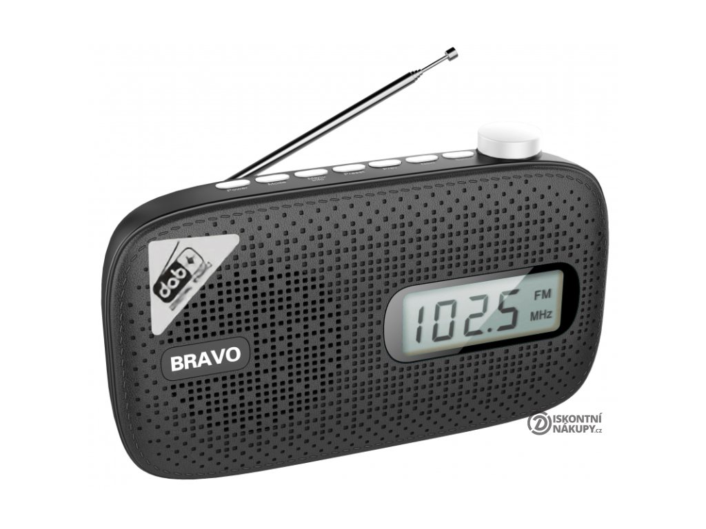 Šikovné a kompaktní digitální DAB rádio Bravo B-4906. Vydrží až 8 hodin na jedno nabití.