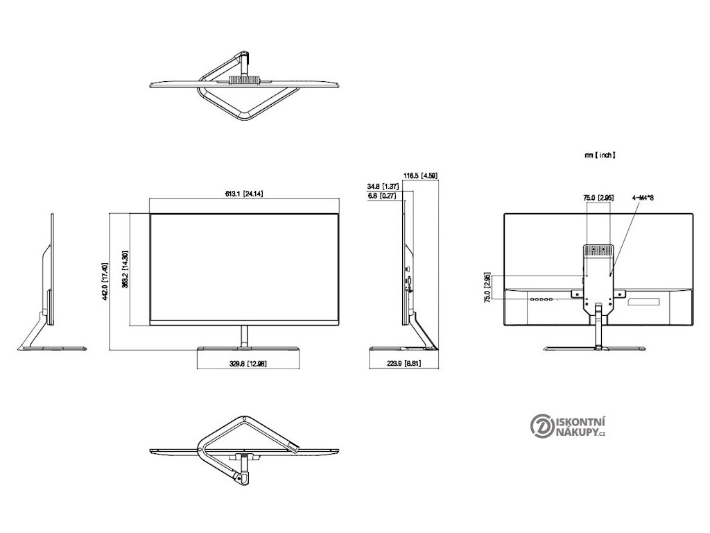 Rozměry s podstavcem: 613,1 × 442 × 223,9 mm