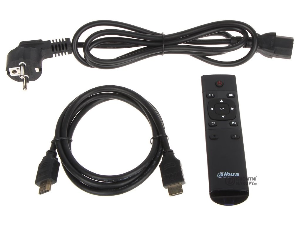 Součástí balení je HDMI kabel a dálkové ovládání.