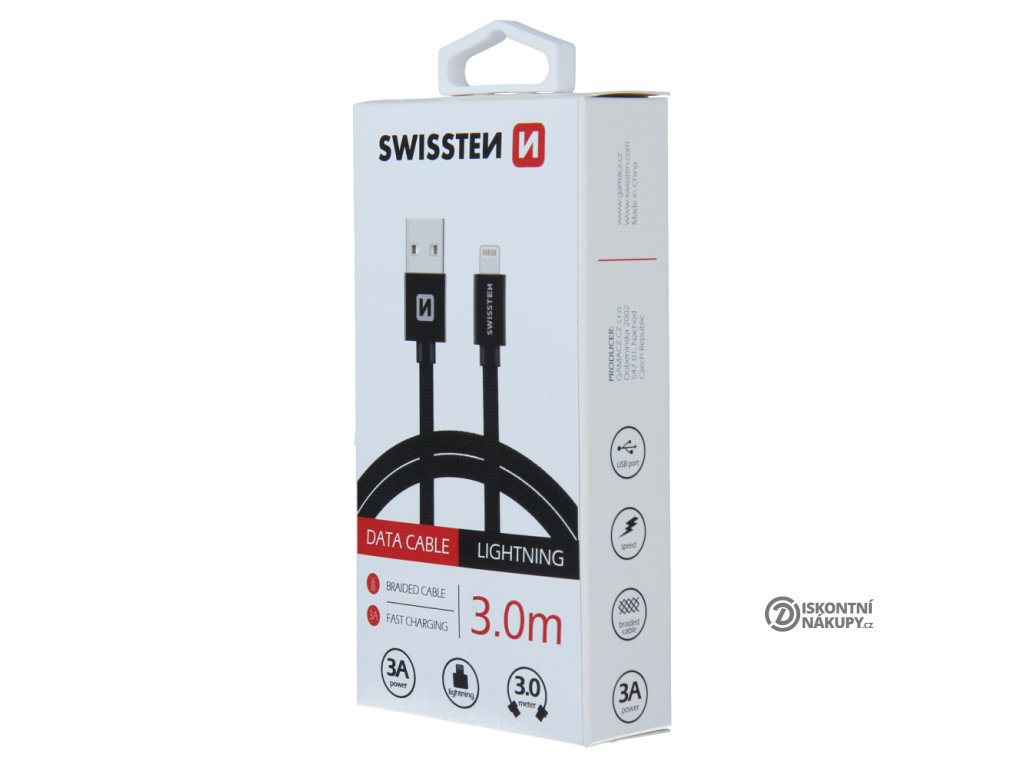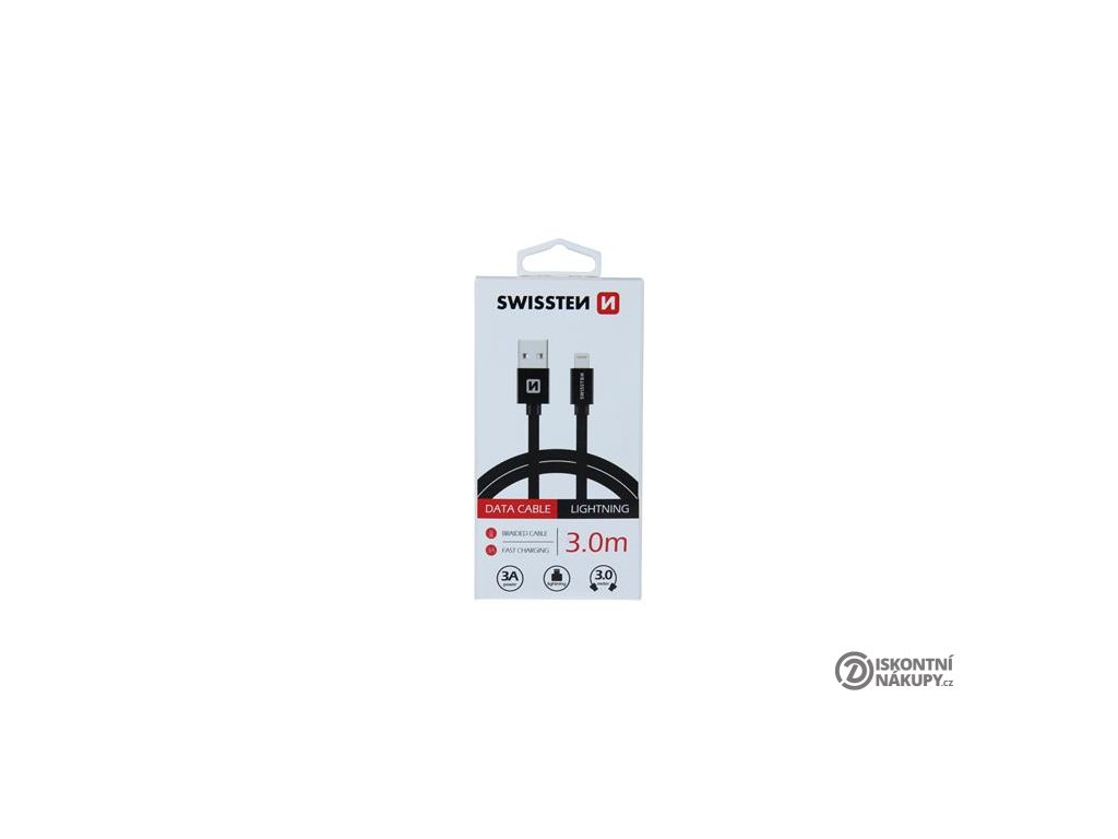 DATOVÝ KABEL SWISSTEN TEXTILE USB / LIGHTNING 3,0 M ČERNÝ