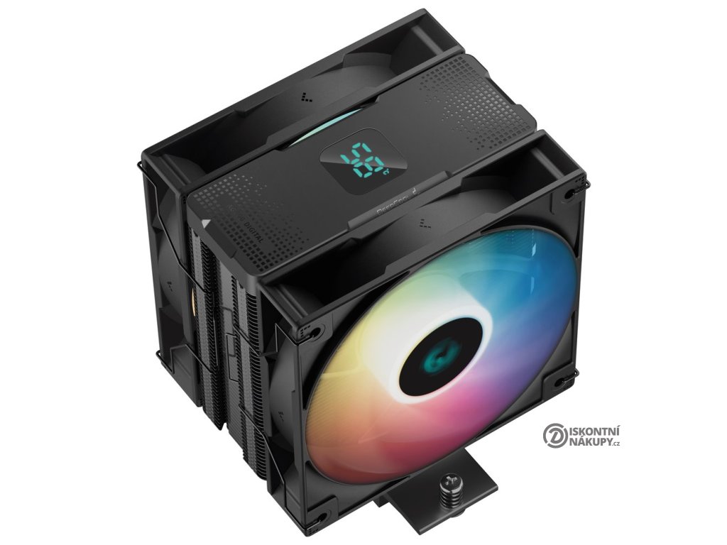 Stylový chladič DEEPCOOL AG400 Digital PLUS ARGB pro procesory AMD a Intel. Je navržen pro efektivní odvod tepla, o což se stará dvojice 120mm ventilátorů spolu se systémem 4 heatpipe. Disponuje nízkoprofilovou digitální obrazovkou, která v reálném čase zobrazuje informace o teplotě a využití procesoru, a to včetně varování před vysokou teplotou.