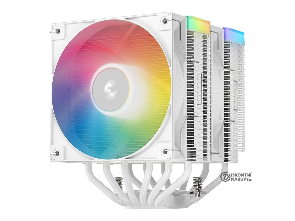 DEEPCOOL AG620 WH ARGB V2Chladič pro procesory Intel i AMD je vybaven šesti heatpipe a dvěma 120 mm ventilátory s ARGB podsvícením a PWM regulací. K připojení slouží 4pin PWM konektor a 3pin ARGB konektor.