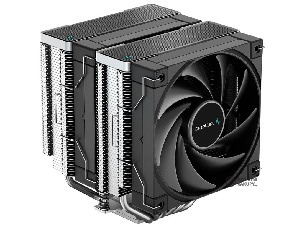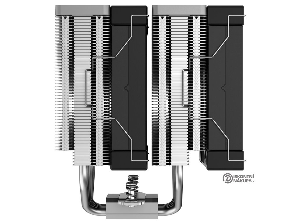 DEEPCOOL AK620Chladič pro procesory Intel i AMD je vybaven šesti heatpipe a dvěma 120 mm ventilátory s PWM regulací. K připojení slouží 4-pin PWM konektor.
