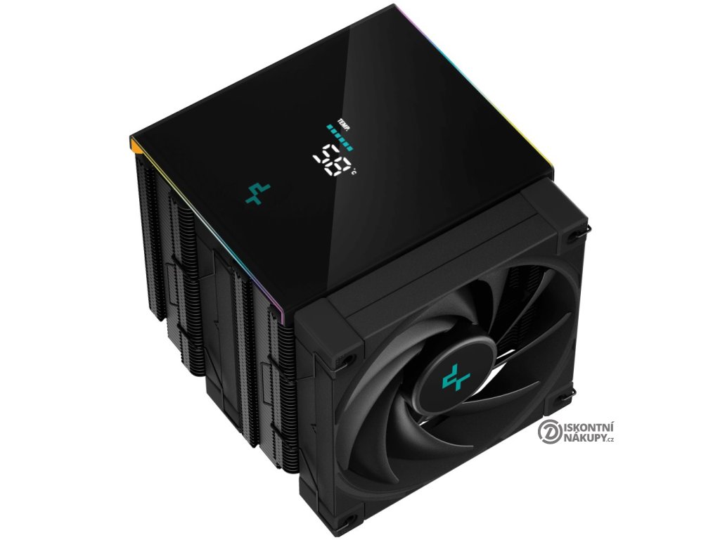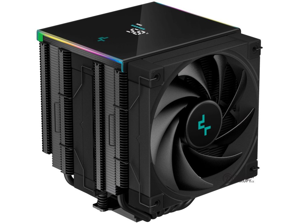DEEPCOOL AK620 DigitalChladič pro procesory Intel i AMD je vybaven šesti heatpipe a dvěma 120 mm ventilátory s PWM regulací. Předností chladiče je praktický digitální displej, který zobrazuje teplotu a využití procesoru v reálném čase. Samozřejmostí je upozornění, pokud je teplota příliš vysoká. K připojení slouží 4pin PWM, 3pin ARGB a 9pin USB konektor.