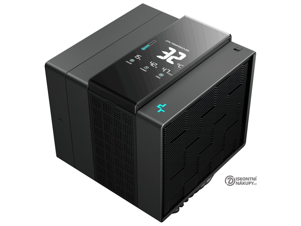 DEEPCOOL Assassin IV VC VisionElegantní chladič pro procesory Intel i AMD je vybaven sedmi heatpipe a dvěma ventilátory s PWM regulací. Předností jsou dva režimy provozu, výkonný a tichý, mezi kterými lze přepínat přímo na chladiči. Nejvýraznějším doplňkem je vylepšený čtyřsegmentový displej, který monitoruje teplotu, využití, příkon a frekvenci procesoru. K připojení slouží 4pin PWM konektor.