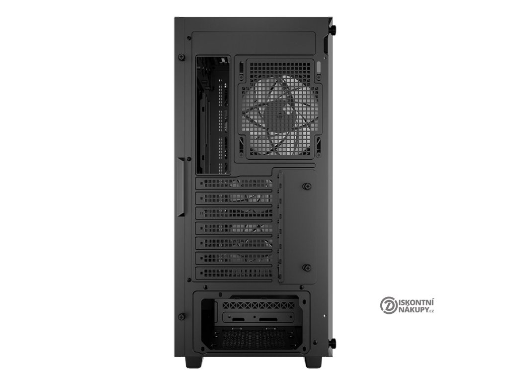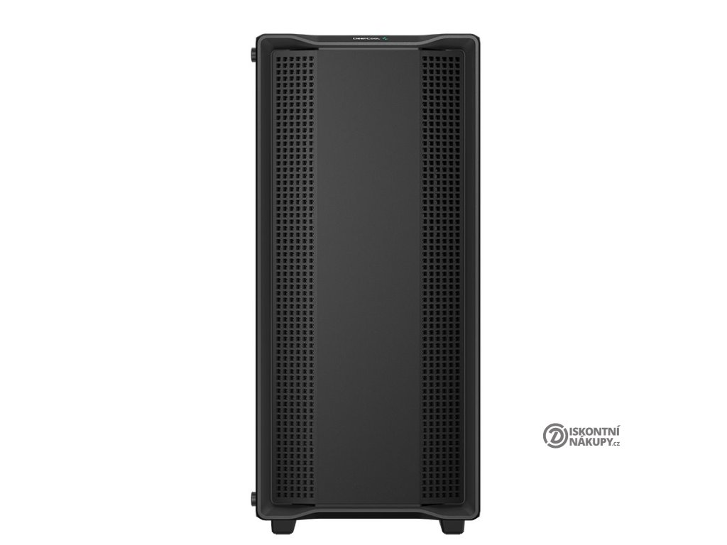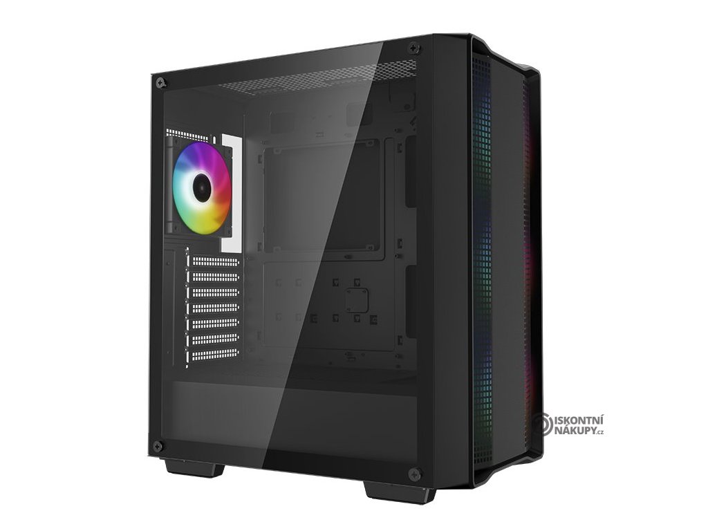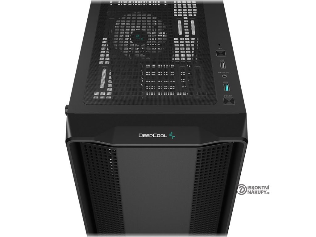 DEEPCOOL CC560 ARGB V2Skříň formátu Middle Tower s průhlednou bočnicí nabízí dvě 2,5" pozice pro SSD disky a dvě 3,5" pozice pro pevné disky. Na horním panelu se nachází jeden USB 3.0 port, jeden USB 2.0 port a kombinovaný port sluchátek a mikrofonu. Skříň je osazena celkem čtyřmi ventilátory s ARGB podsvícením o velikosti 120 mm. Důmyslné řešení umožňuje pohodlné umístění až 360 mm dlouhého výměníku vodního chlazení na přední straně. Ve skříni je dostatek prostoru pro chladič CPU do výšky až 165 mm a grafickou kartu o délce 370 mm. Dodávána je bez zdroje. Součástí je také magnetický prachový filtr na horním panelu.