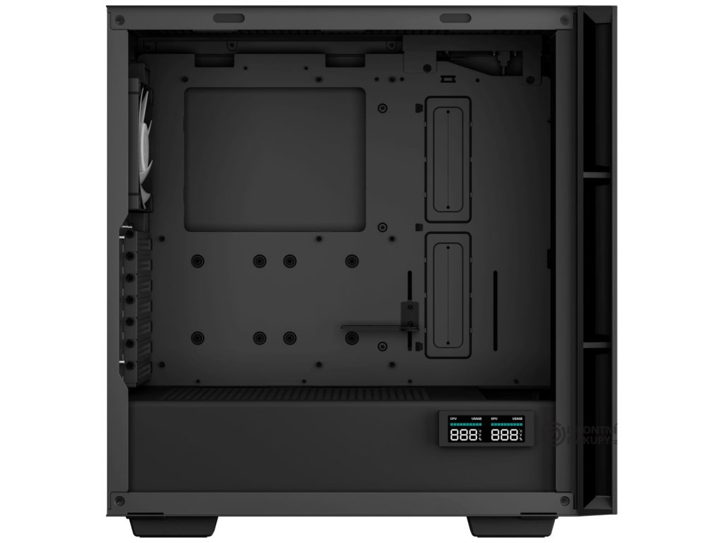 Digitální displej zobrazuje nejdůležitější informace o CPU a GPU, jako je teplota a provozní zátěž. Prostor uvnitř skříně DEEPCOOL CH560 DIGITAL vám umožní rozmanité možnosti konfigurace. S přehledem namontujete velké komponenty, jako jsou E-ATX základní desky, grafické karty nebo 170mm napájecí zdroje. K dispozici jsou celkem 4 ventilátory pro maximální chladicí výkon.