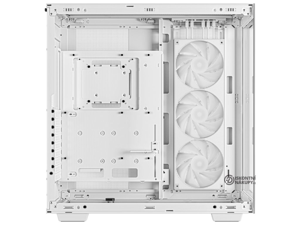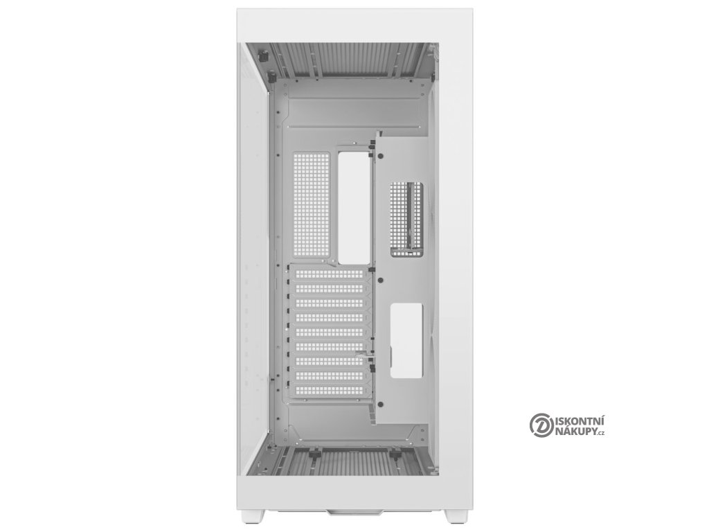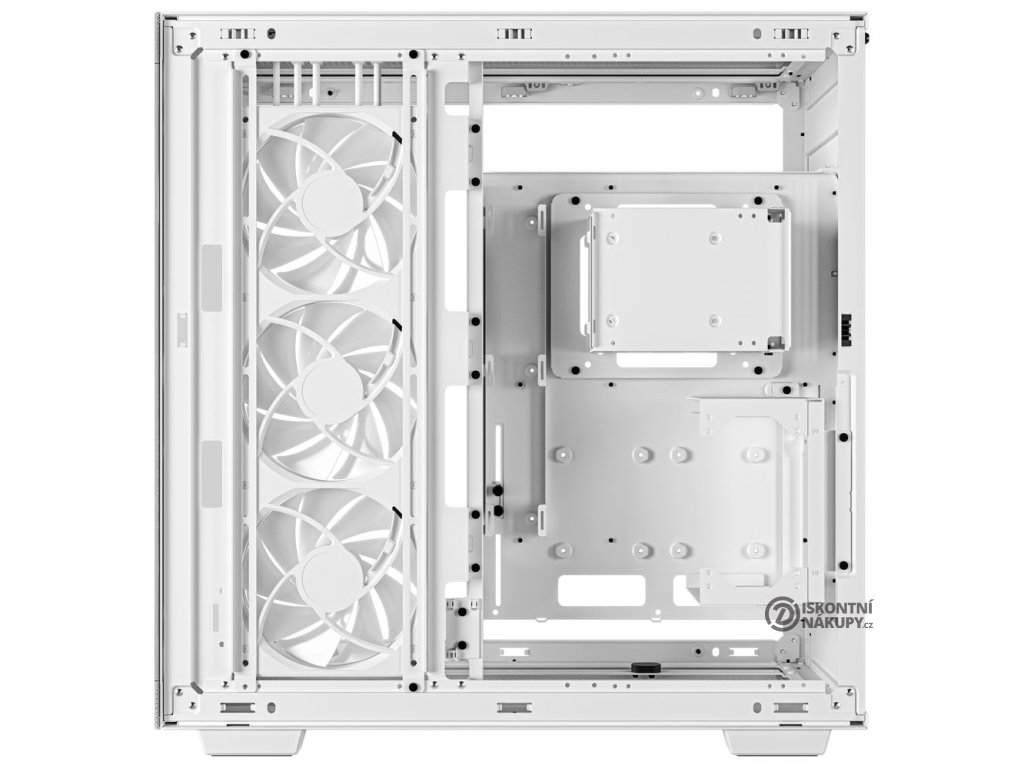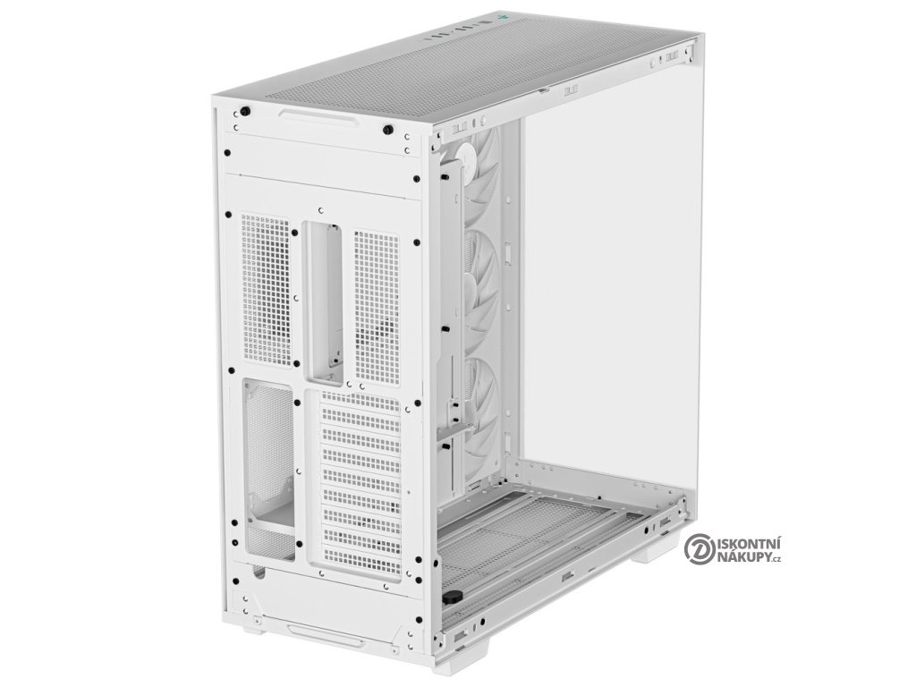 DEEPCOOL CH780 ARGBSkříň formátu Middle Tower s průhlednou bočnicí a průhledným předním panelem nabízí dvě 2,5" pozice pro SSD disky a dvě 3,5" pozice pro pevné disky. Na horním panelu se nachází čtyři USB 3.0 porty, jeden USB-C port a kombinovaný port sluchátek a mikrofonu. Skříň je osazena třemi 140mm ventilátory s ARGB podsvícením, spojenými do jedné 420mm jednotky. Trojice ventilátorů tak vyžaduje zapojení pouze jediné sady kabelů PWM a ARGB. Důmyslné řešení umožňuje pohodlné umístění až 420 mm dlouhého výměníku vodního chlazení na vrchní, boční či dolní straně. Ve skříni je dostatek prostoru pro chladič CPU do výšky až 132 mm a grafickou kartu o délce 480 mm. Dodávána je bez zdroje. Součástí je také sada prachových filtrů a držák grafické karty.