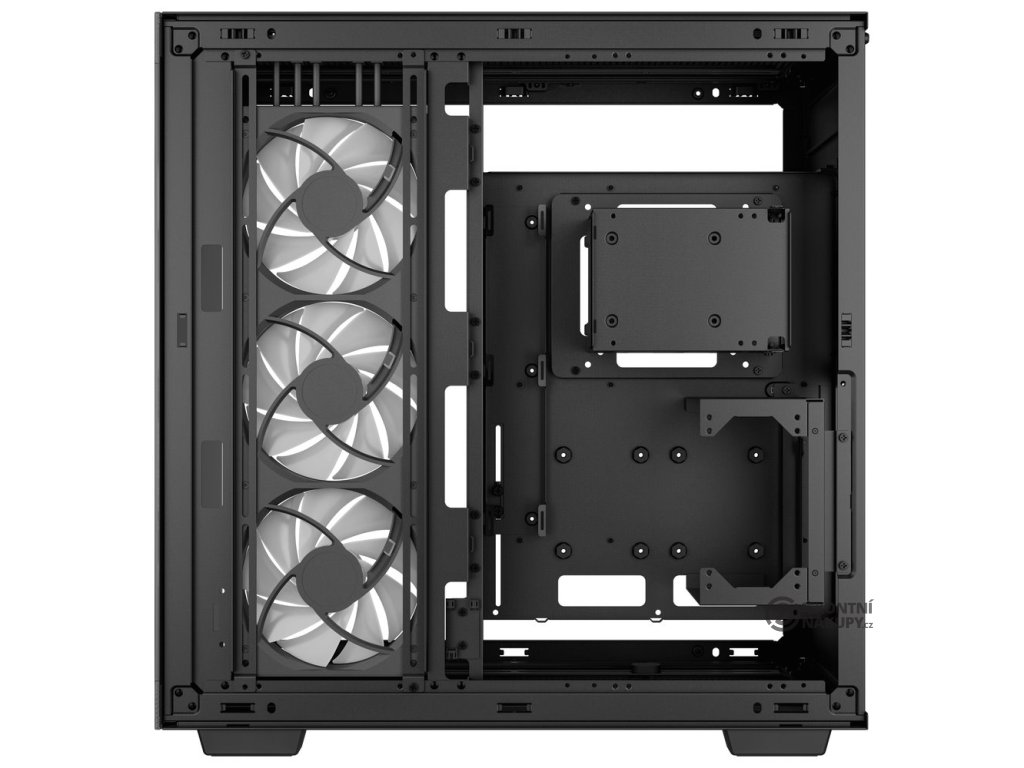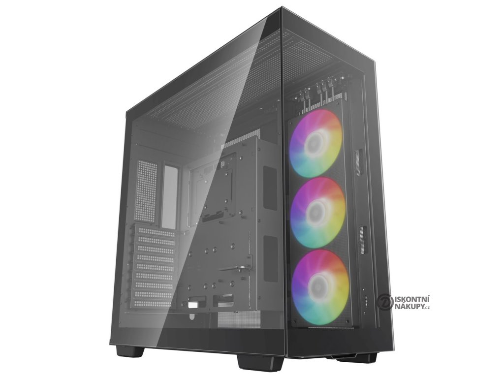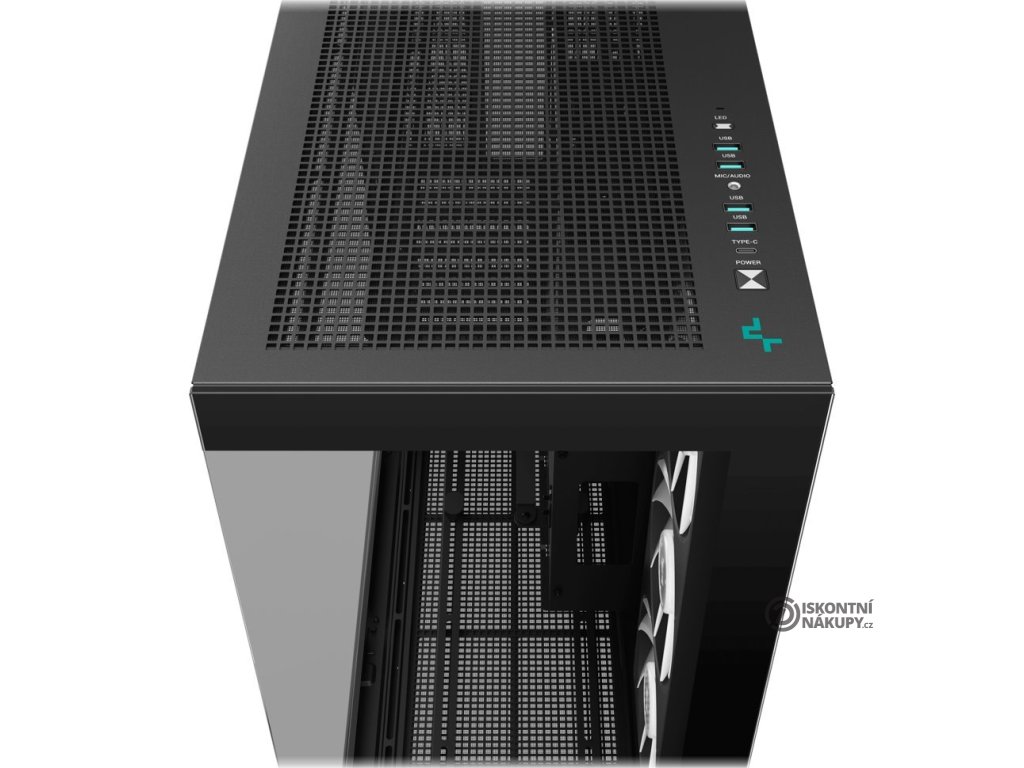 DEEPCOOL CH780 ARGBSkříň formátu Middle Tower s průhlednou bočnicí a průhledným předním panelem nabízí dvě 2,5" pozice pro SSD disky a dvě 3,5" pozice pro pevné disky. Na horním panelu se nachází čtyři USB 3.0 porty, jeden USB-C port a kombinovaný port sluchátek a mikrofonu. Skříň je osazena třemi 140mm ventilátory s ARGB podsvícením, spojenými do jedné 420mm jednotky. Trojice ventilátorů tak vyžaduje zapojení pouze jediné sady kabelů PWM a ARGB. Důmyslné řešení umožňuje pohodlné umístění až 420 mm dlouhého výměníku vodního chlazení na vrchní, boční či dolní straně. Ve skříni je dostatek prostoru pro chladič CPU do výšky až 132 mm a grafickou kartu o délce 480 mm. Dodávána je bez zdroje. Součástí je také sada prachových filtrů a držák grafické karty.
