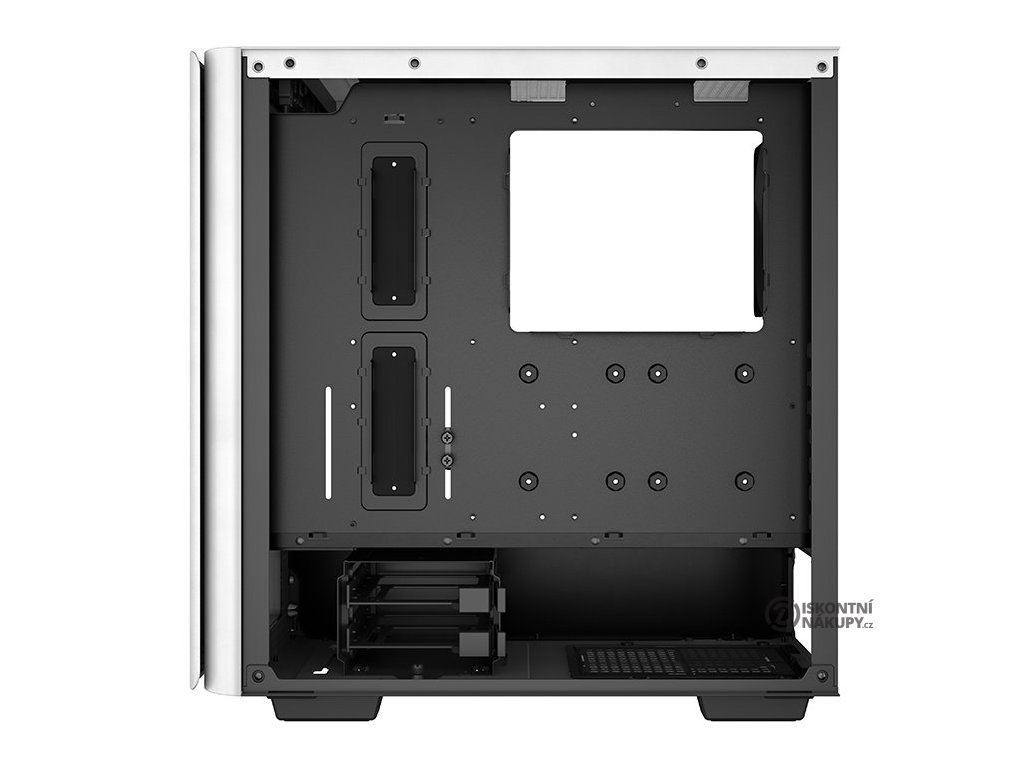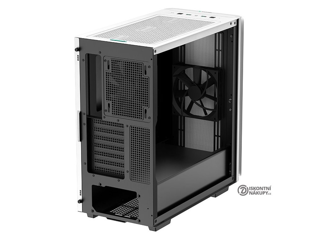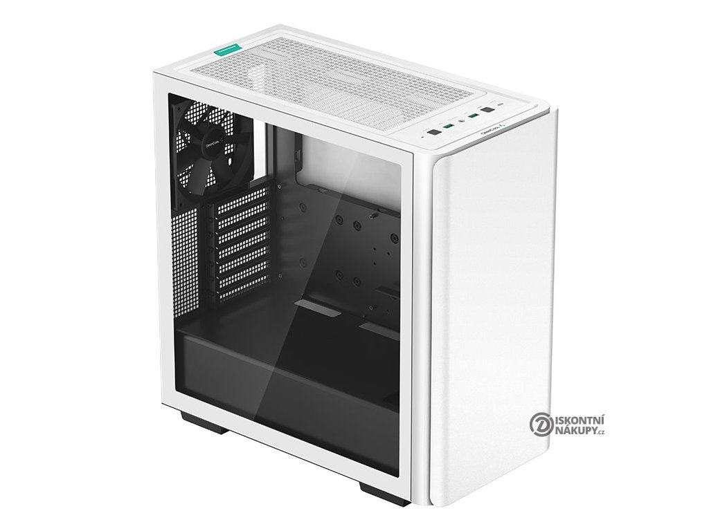 DEEPCOOL CK500Skříň formátu Middle Tower s průhlednou bočnicí nabízí dvě 2,5" pozice pro SSD disky a dvě 3,5" pozice pro pevné disky. Na horním panelu se nachází dva USB 3.0 porty, jeden port USB-C a kombinovaný port sluchátek a mikrofonu. Skříň je vybavena dvěma 140 mm ventilátory. Důmyslné řešení umožňuje pohodlné umístění až 360 mm dlouhého výměníku vodního chlazení na přední straně. Ve skříni je dostatek prostoru pro chladič CPU do výšky až 175 mm a grafickou kartu o délce 380 mm. Skříň je dodávána bez zdroje. Součástí je také sada prachových filtrů.