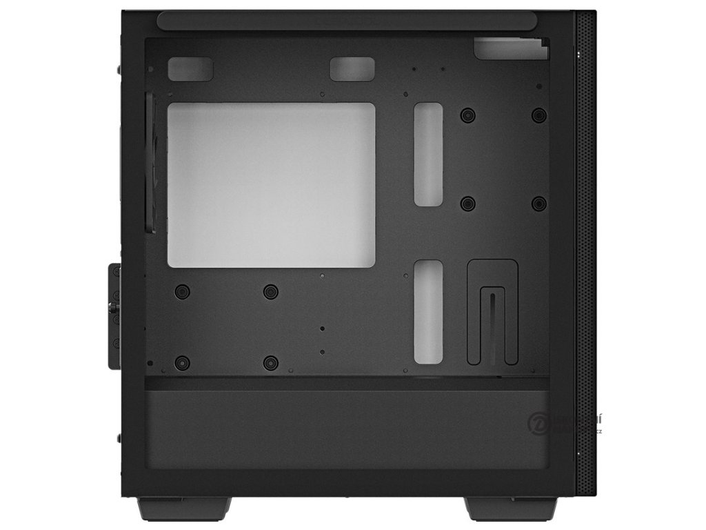 DEEPCOOL MACUBE 110Skříň formátu Mini tower s průhlednou bočnicí nabízí dvě 2,5" pozice pro SSD disky a dvě 3,5" pozice pro pevné disky. Na horním panelu se nachází dva USB 3.0 porty a kombinovaný vstup/výstup zvuku. Skříň je vybavena jedním ventilátorem o velikosti 120 mm na zadní straně. Důmyslné řešení umožňuje pohodlné umístění až 360 mm dlouhého výměníku vodního chlazení na přední a vrchní straně. Ve skříni je dostatek prostoru pro chladič CPU do výšky až 165 mm a grafickou kartu o délce 320 mm. Skříň je dodávána bez zdroje. Součástí je také sada prachových filtrů.