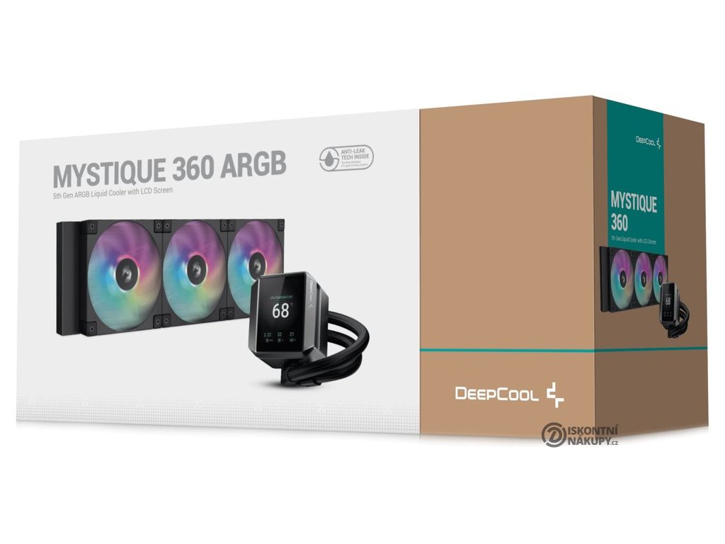 DEEPCOOL MYSTIQUE 360 ARGBVodní chladič určený pro chlazení široké škály procesorů. Vyznačuje se vysokou kvalitou, výkonem a spolehlivostí. Disponuje třemi 120 mm velkými ventilátory s ARGB podsvícením. Odolné opletené hadice jsou dlouhé 410 mm a díky dostatečně širokému průměru zaručují plynulý průtok chladicí kapaliny. Chladicí blok je vybaven konfigurovatelným 2,8" LCD displejem s rozlišením 640 × 480 px. Oživte svůj kreativní styl pomocí vlastních obrázků a animovaných gifů. Orientace obrazovky se navíc automaticky přizpůsobí díky vestavěnému gyroskopickému senzoru.
