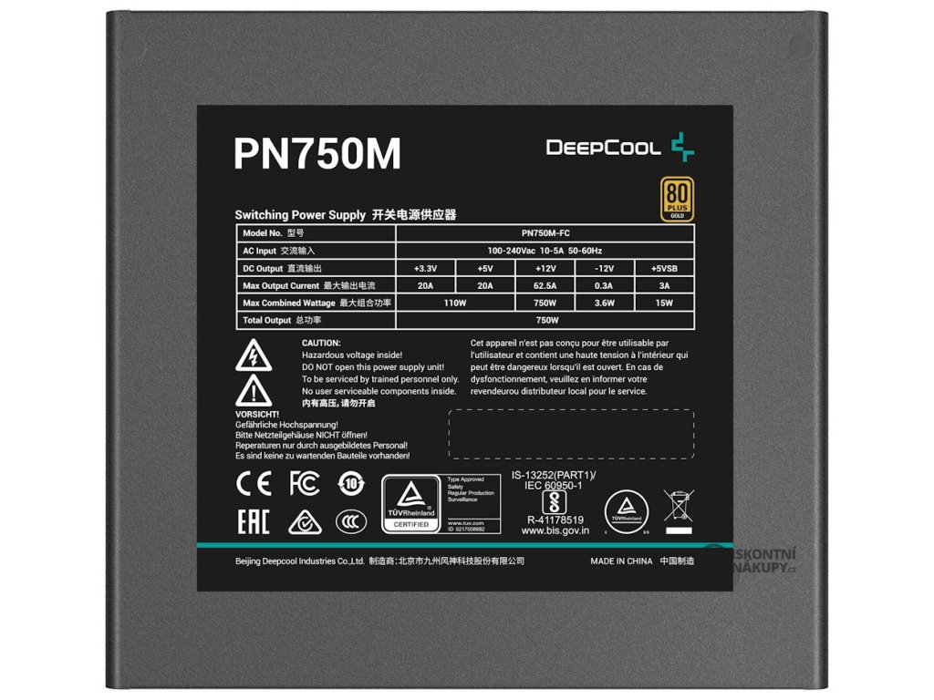 DEEPCOOL PN750M 750 WNapájecí zdroj o výkonu 750 W je osazen tichým a přitom výkonným 120 mm ventilátorem. Zdroj splňuje certifikaci 80PLUS Gold.