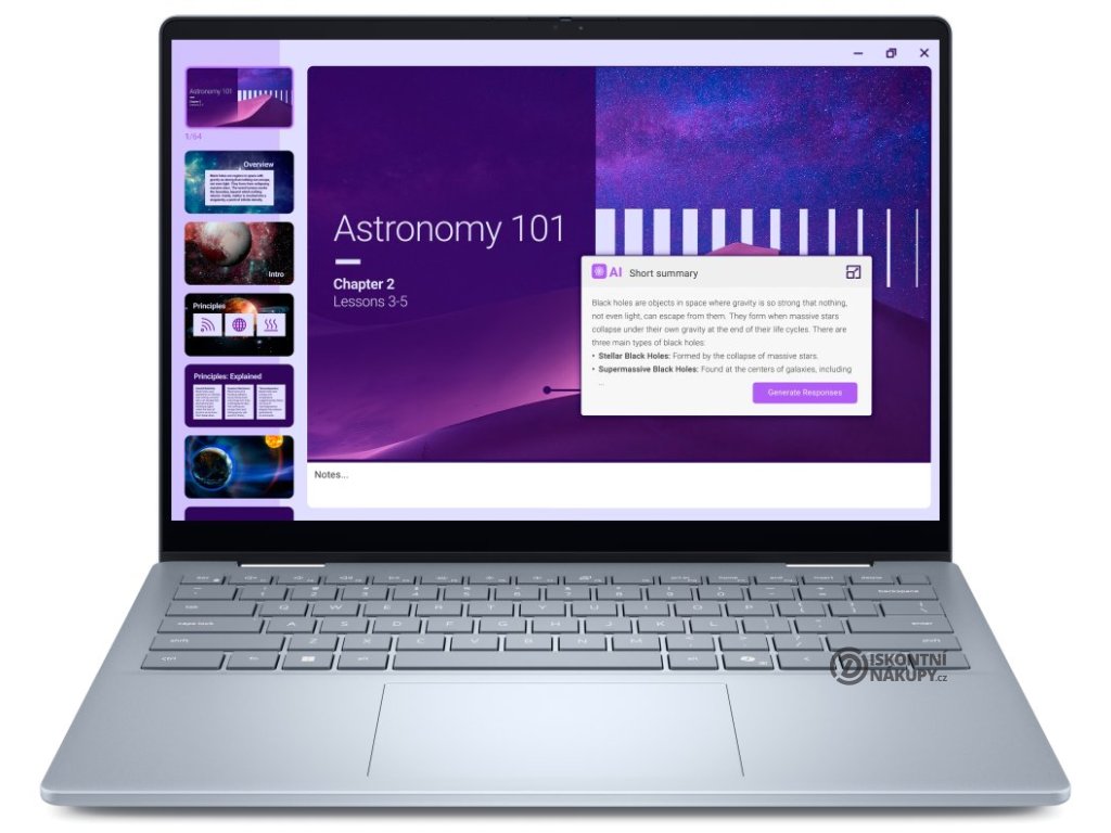Tento model notebooku Dell 14 Plus 2 v 1 je vybaven integrovanou jednotkou Intel AI Boost NPU, která funguje jako výpočetní modul pro procesy umělé inteligence a zprostředkuje vám AI funkce Copilot+ PC. Díky tomu se můžete pustit například do generování obsahu, ať už v obrazové, nebo textové formě, efektivně získávat rozmanité informace, tvořit tabulky, prezentace a další obsah. Skvěle se uplatní například při multitaskingu.
