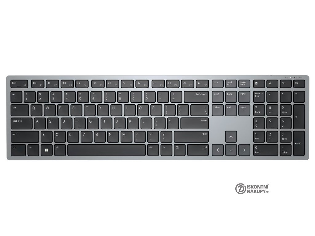 Stylová plnohodnotná bezdrátová klávesnice Dell podporuje připojení až ke třem zařízením v jeden moment. Napájení zajišťují dvě AAA baterie, které zaručí výdrž až 36 měsíců. Připojení je realizováno bezdrátově skrze Bluetooth či miniaturní USB přijímač a technologii 2,4 GHz.
