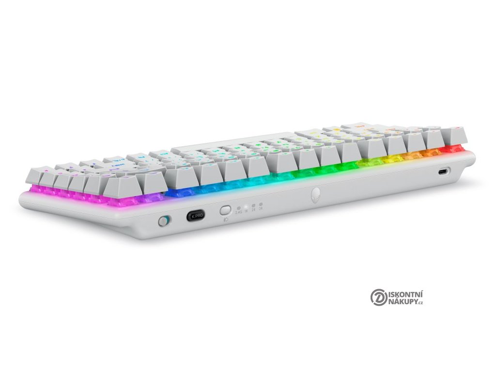 Dell Alienware Pro Wireless Gaming KeyboardBezdrátová mechanická herní klávesnice je vybavena spínači Alienware Linear s perfektní odezvou a životností až 100 milionů stisků. Zajisté potěší také nastavitelné podsvícení AlienFX ve škále až 16,8 milionů barev. Samozřejmě nechybí ani funkce Anti-Ghosting a N-Key rollover. Připojení k počítači lze realizovat jak bezdrátově skrze Bluetooth či miniaturní USB přijímač a technologii 2,4 GHz, tak i drátově pomocí USB kabelu, který slouží zároveň pro nabíjení.