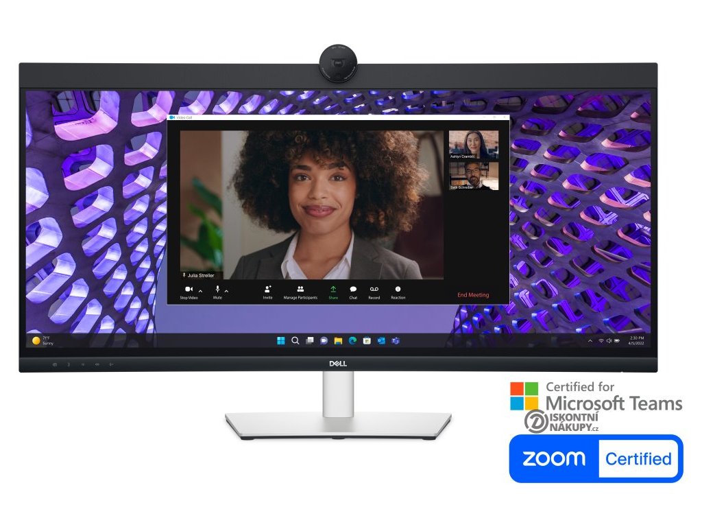 Monitor Dell P3424WEB je vybaven konferenční 4Mpx webkamerou, která pohlcuje množství světla a produkuje živý obraz v rámci on-line schůzek. Uplatní se také při slabém osvětlení v místnosti. Samozřejmostí jsou také vestavěné mikrofony, respektive reproduktory, které zajistí čistý přenos hlasu a plnohodnotné ozvučení. Stačí jen zahájit mítink v Teams.