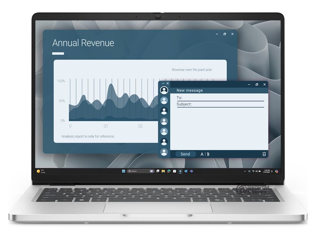 Lehký a výkonný byznys notebook je vybaven procesorem Intel Core Ultra 5, který rozjede všechny moderní aplikace disponuje dedikovanou NPU pro AI aplikace. Díky tomu budete během práce efektivnější, zpracujete tabulky, vytvoříte prezentace nebo stvoříte poutavé texty pro rozmanité účely, s podporou umělé inteligence