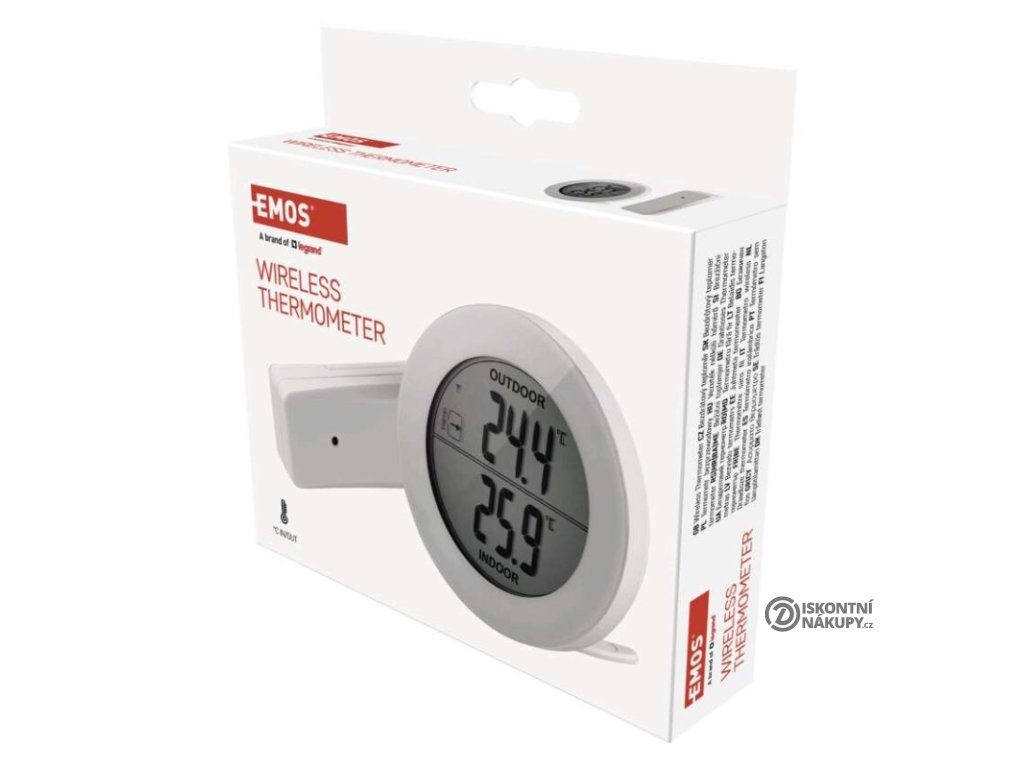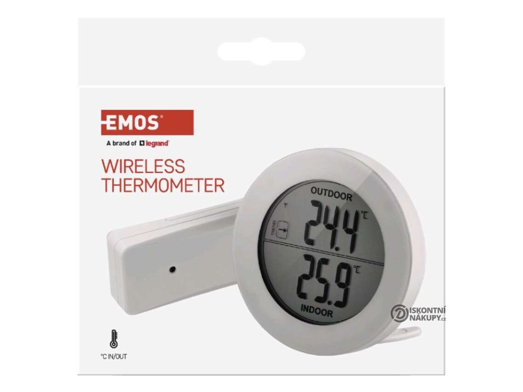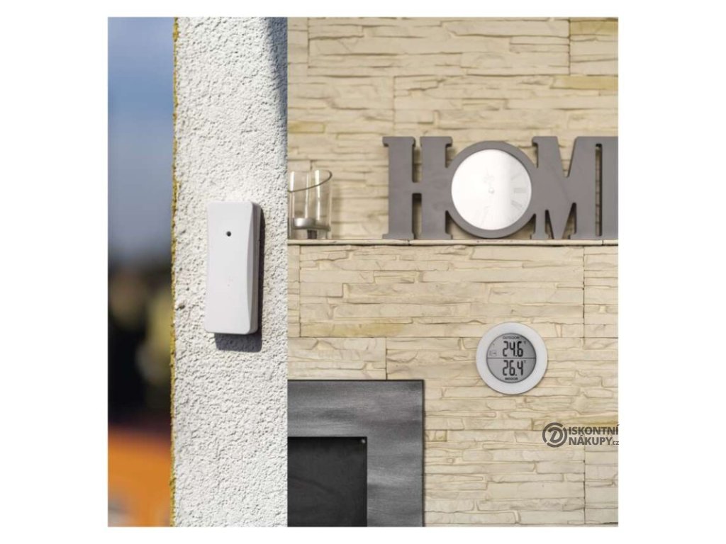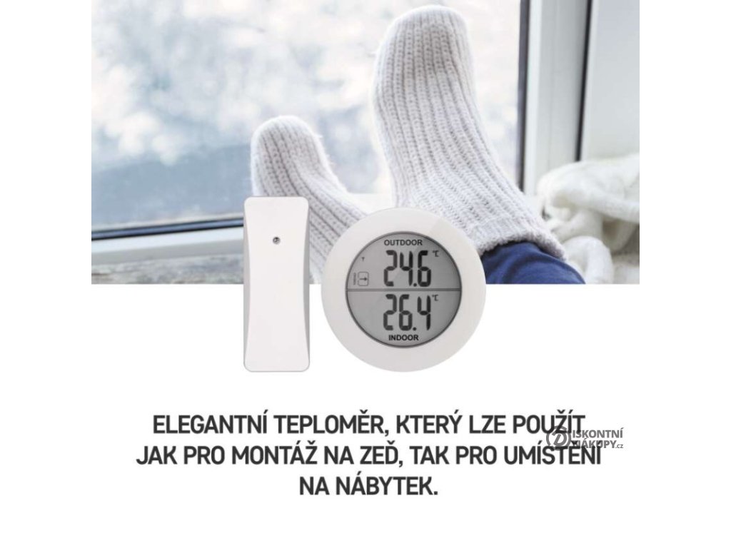 Bezdrátový teploměr, který měří vnitřní a venkovní teplotu. K teploměru se připojuje jedno bezdrátové čidlo s dosahem až 80 m.