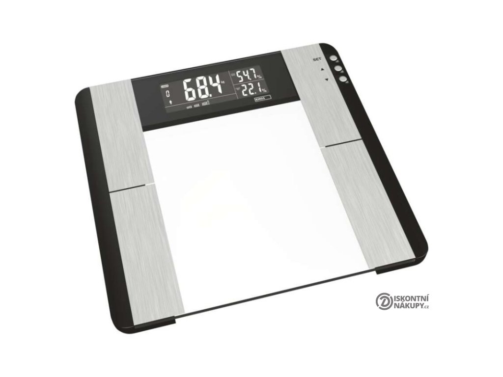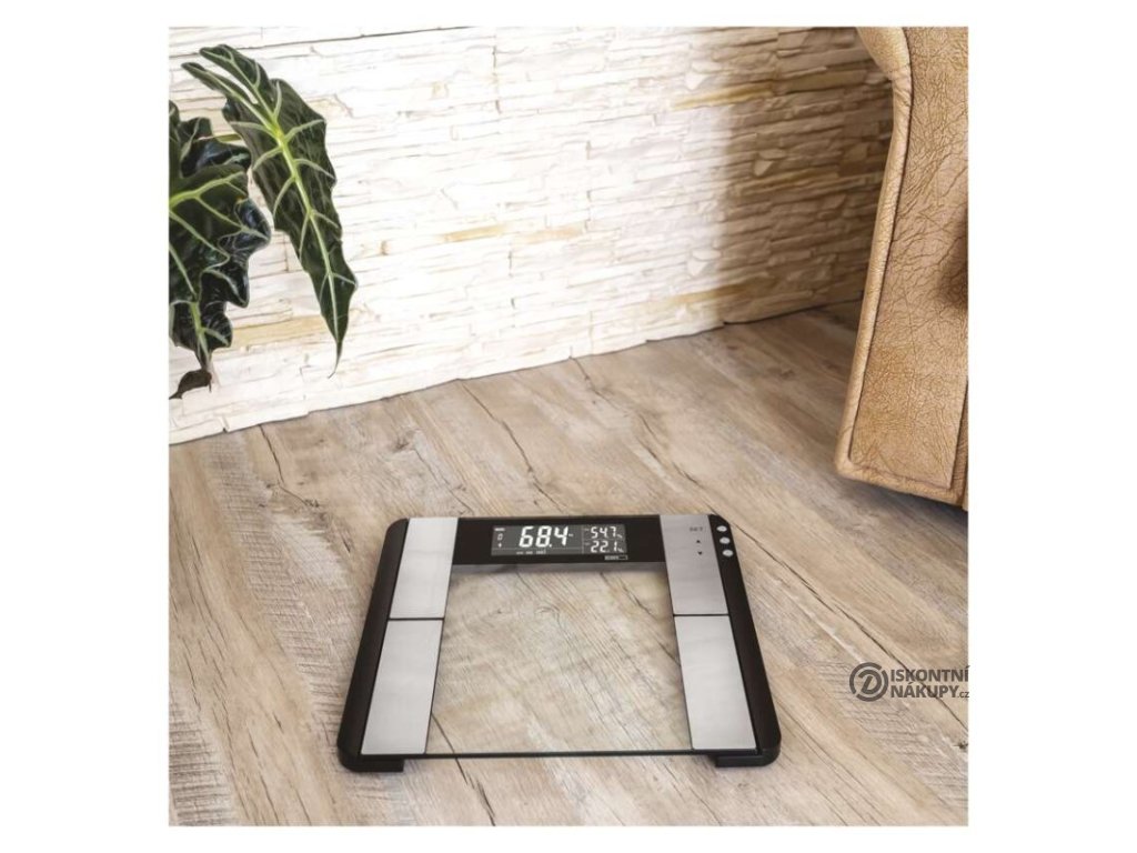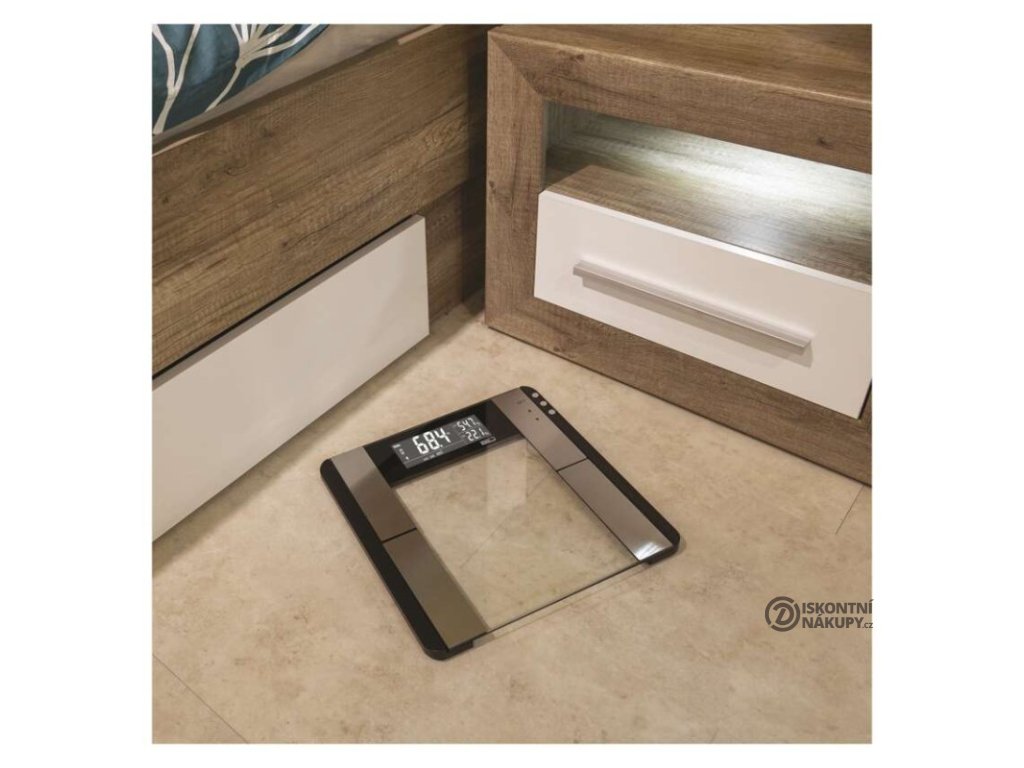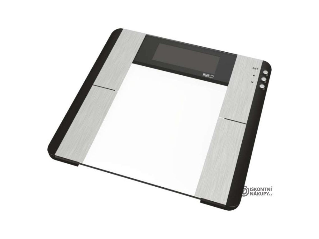 Digitální osobní váha s výpočtem BMI indexu (množství tuku, vody a svalové hmoty v těle).Paměť pro 10 uživatelů.Elegantní slim design, vážící plocha z bezpečnostního skla (6mm), podsvícený displej s bílými číslicemi.Váživost do 150 kg, možnost přepnutí jednotky vážení.Digitální osobní váha s výpočtem BMI indexu (množství tuku, vody a svalové hmoty v těle).Paměť pro 10 uživatelů.Elegantní slim design, vážící plocha z bezpečnostního skla (6mm), podsvícený displej s bílými číslicemi.Váživost do 150 kg, možnost přepnutí jednotky vážení.