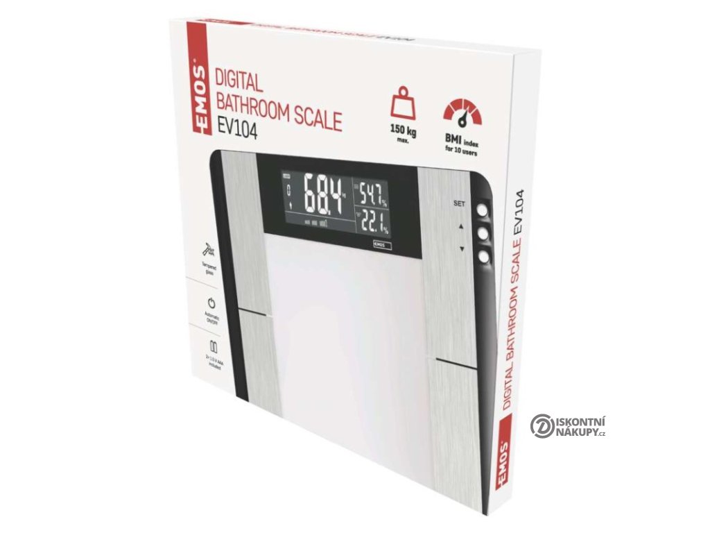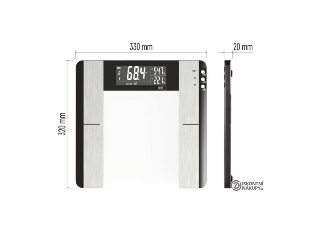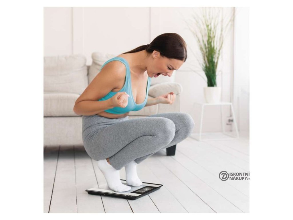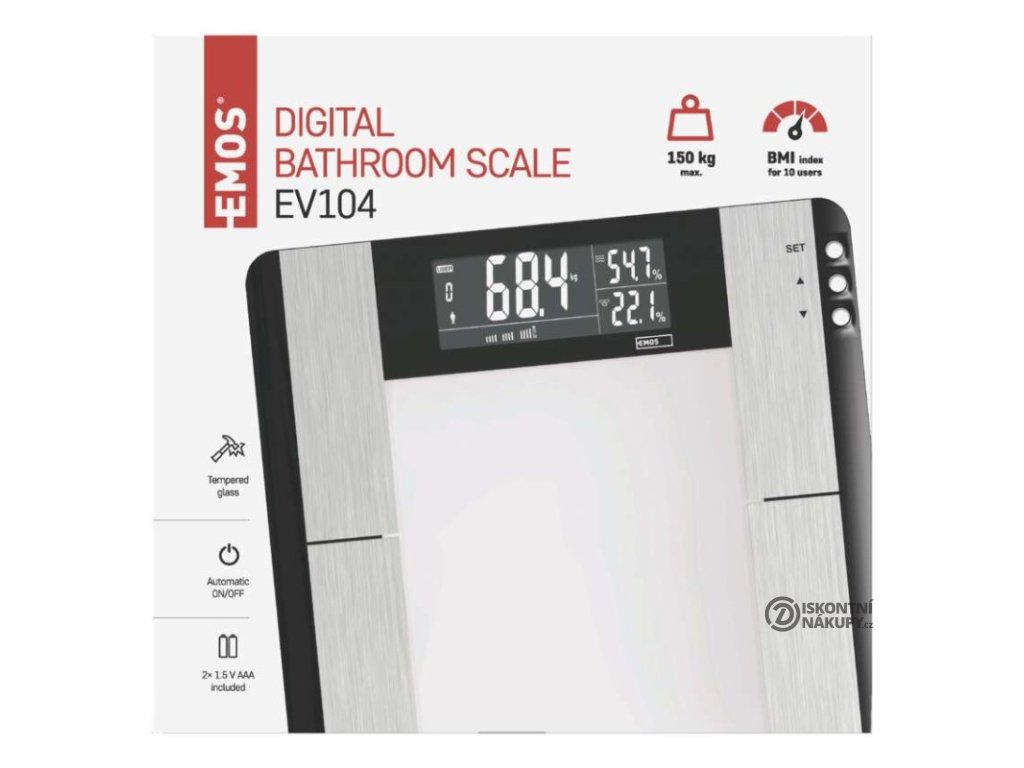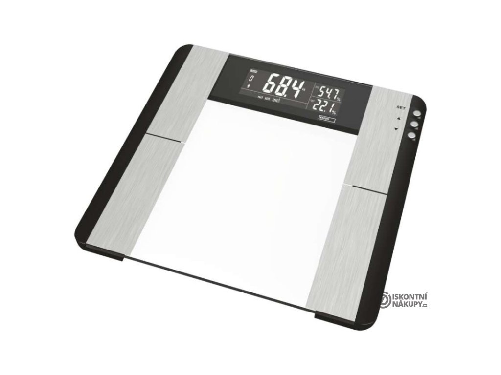 Digitální osobní váha s výpočtem BMI indexu (množství tuku, vody a svalové hmoty v těle).Paměť pro 10 uživatelů.Elegantní slim design, vážící plocha z bezpečnostního skla (6mm), podsvícený displej s bílými číslicemi.Váživost do 150 kg, možnost přepnutí jednotky vážení.Digitální osobní váha s výpočtem BMI indexu (množství tuku, vody a svalové hmoty v těle).Paměť pro 10 uživatelů.Elegantní slim design, vážící plocha z bezpečnostního skla (6mm), podsvícený displej s bílými číslicemi.Váživost do 150 kg, možnost přepnutí jednotky vážení.