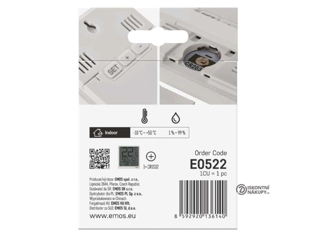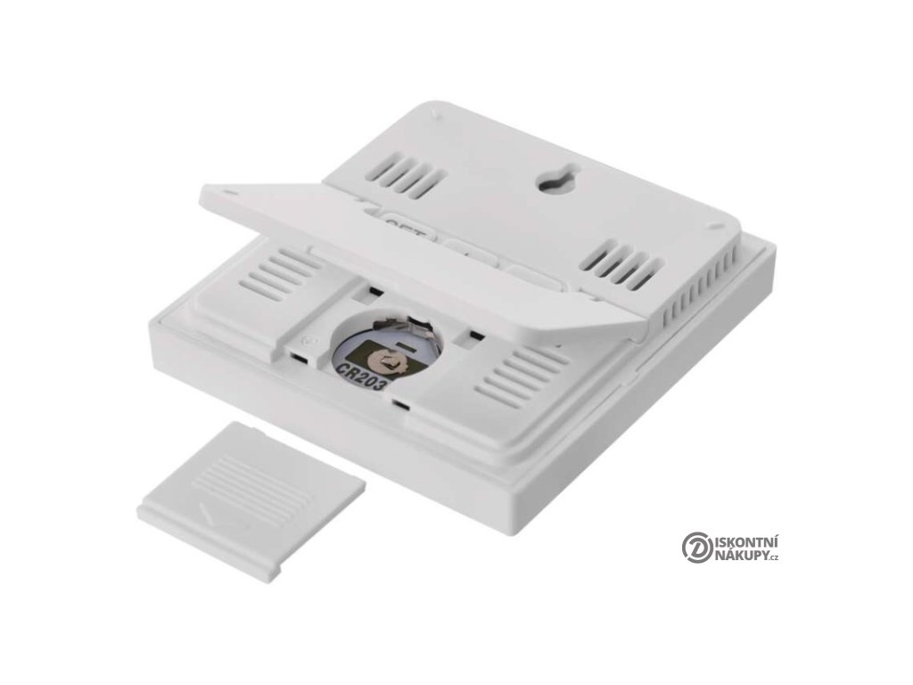 12/24 formát času: ano|barevný displej (black mask) podsvícený: ne|budík: ne|časová pásma: ne|datum: ano|dosah ve volném prostoru: ne|drátová sonda k čidlu: ne|funkce stopky: ne|hodiny: ano, quartz|kalendář: ne|LED podsvícení displeje: ne|magnet na připevnění: ne|min. a max. teplota: ne|možné další čidlo: ne|možnost nastavení jednotky teploty: ano|možnost pověšení na zeď: ano|napájení čidla: ne|napájení stanice: 1× 3 V CR2032 (součástí balení)|odpočet času max. od: ne|opakované buzení: ne|paměť poslední hodnoty: ne|přenosová frekvence: ne|prodejní obal: 1 ks, krabička|provedení teploměru: bezdrátový|rozměr čidla: ne|rozměr hlavní jednotky: 83 × 17 × 88 mm|síťový adaptér: ne|teplotní index: ne|teplotní výstraha: ne|trend teploty: ne|trend tlaku: ne|trvalé podsvícení: ne|velikost displeje: 73 × 73 mm|venkovní teplota: ne|venkovní vlhkost: ne|vnitřní teplota: -10 °C až +50 °C, rozlišení 0,1 °C|vnitřní vlhkost: 1 % až 99 % RV, rozlišení 1 %Popis produktu