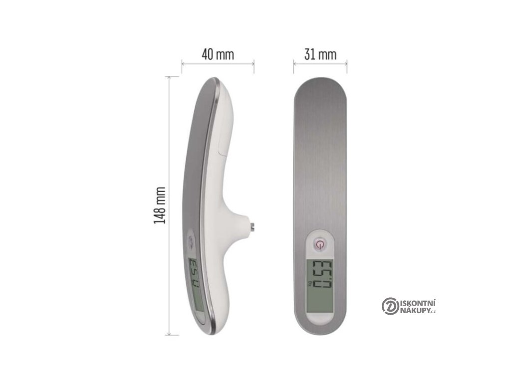 automatické vypnutí: po 1 minutě|barva: stříbrná|Bluetooth: ne|BMI index – měření tuku, vody a svalové hmoty: ne|funkce dovažování: ano|indikace slabých baterií: ano|indikátor přetížení: ano|jednotky váhy: kg, lb|LCD displej: ano|max. zátěž: 50 kg|napájení: 1× 3 V CR2032 (součástí balení)|paměť: ne|podsvícený displej: ne|povrch váhy: ABS plast + hliník (Al)|přesnost vážení: 10 g|prodejní obal: 1 ks, krabička|produkt: závěsná váha|rozměr: 31 × 40 × 148 mmPopis produktu
