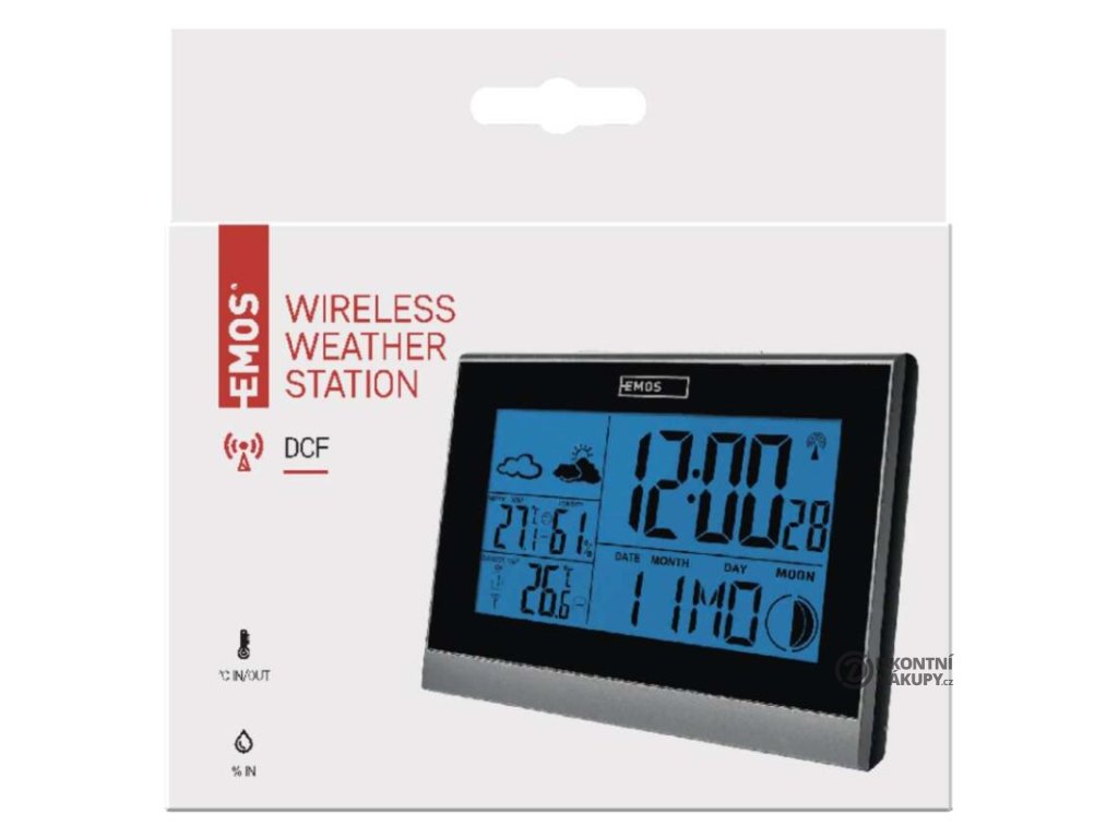 12/24 formát času: ano|anemometr: ne|barevný displej (black mask) podsvícený: ne|barometr: ne|budík: ano|časová pásma: ano|datum: ano|dosah čidla: až 30 m|drátová sonda k čidlu: ne|elektronické plošné podsvícení: ne|fáze měsíce: ano|hodiny: řízené DCF signálem|kalendář: ano|korekce nadmořské výšky: ne|LED podsvícení displeje: ano|min. a max. teplota: ne|možné další čidlo: až 3 čidla (E03070)|možnost nastavení jednotky teploty: °C/°F|možnost pověšení na zeď: ne|napájení čidla: 2× 1,5 V AAA (nejsou součástí balení)|napájení stanice: 3× 1,5 V AAA (nejsou součástí balení)|opakované buzení: ano|předpověď počasí: ano|přenosová frekvence: 433 MHz|prodejní obal: 1 ks, krabička|produkt: meteostanice|projekce: ne|provedení: bezdrátové|rozměr čidla: 24 × 44 × 100 mm|rozměr hlavní jednotky: 52 × 139 × 100 mm|síťový adaptér: ne|srážkoměr: ne|teplotní výstraha: ne|trend teploty: ano|trend tlaku: ne|trvalé podsvícení: ne|velikost displeje: 111 × 61 mm|venkovní teplota: -30 °C až +60 °C, rozlišení 0,1 °C|venkovní vlhkost: ne|vnitřní teplota: 0 °C až +50 °C, rozlišení 0,1 °C|vnitřní vlhkost: 20 % až 90 % RV, rozlišení 1 %Popis produktu