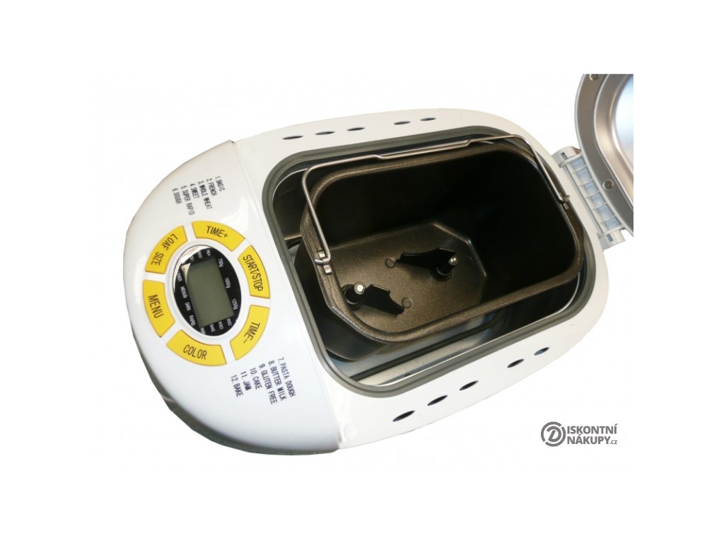 Také oceníte funkci odložený start (až o 13h), díky které si můžete předem navolit, kdy má být zahájeno pečení a Vy potom můžete přijít, až když je dopečeno. Součástí pekárny jsou i hnětací háky, které se Vám postarají o přípravu těsta.