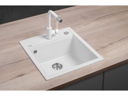 Granitový dřez bez odkapu CUBIS Concept DG00C50wh vyniká atraktivním designem, kvalitním zpracováním a komfortní tlačítkovou výpustí PUSH-IN Button.