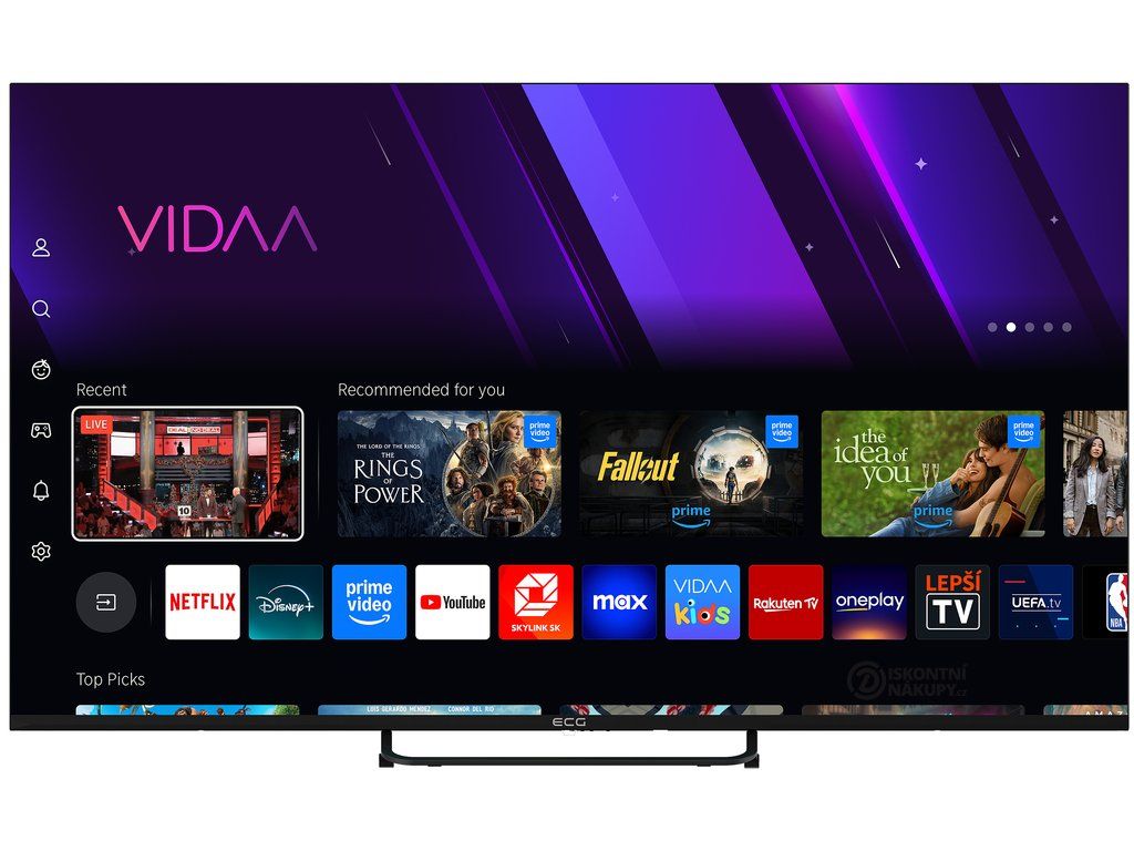 Chytrá televize ECG 55 USV252 přichází do vaší domácnosti, aby celé vaší rodině zajistila skvělou audiovizuální zábavu. Tento přístroj s 55palcovou úhlopříčkou (140 cm) kombinuje brilantní 4K HDR obraz s moderními smart funkcemi a vyladěným stereo zvukem, takže vás nezklame v žádném ohledu. Okouzlí vás přitom hned na první pohled – díky tenkému bezrámečkovému designu. Ovšem to pravé nadšení přijde, až prozkoumáte jeho operační systém VIDAA, který skýtá nepřeberné možnosti úžasné zábavy. Sečteno a podtrženo: od této televize se nebudete chtít odtrhnout.