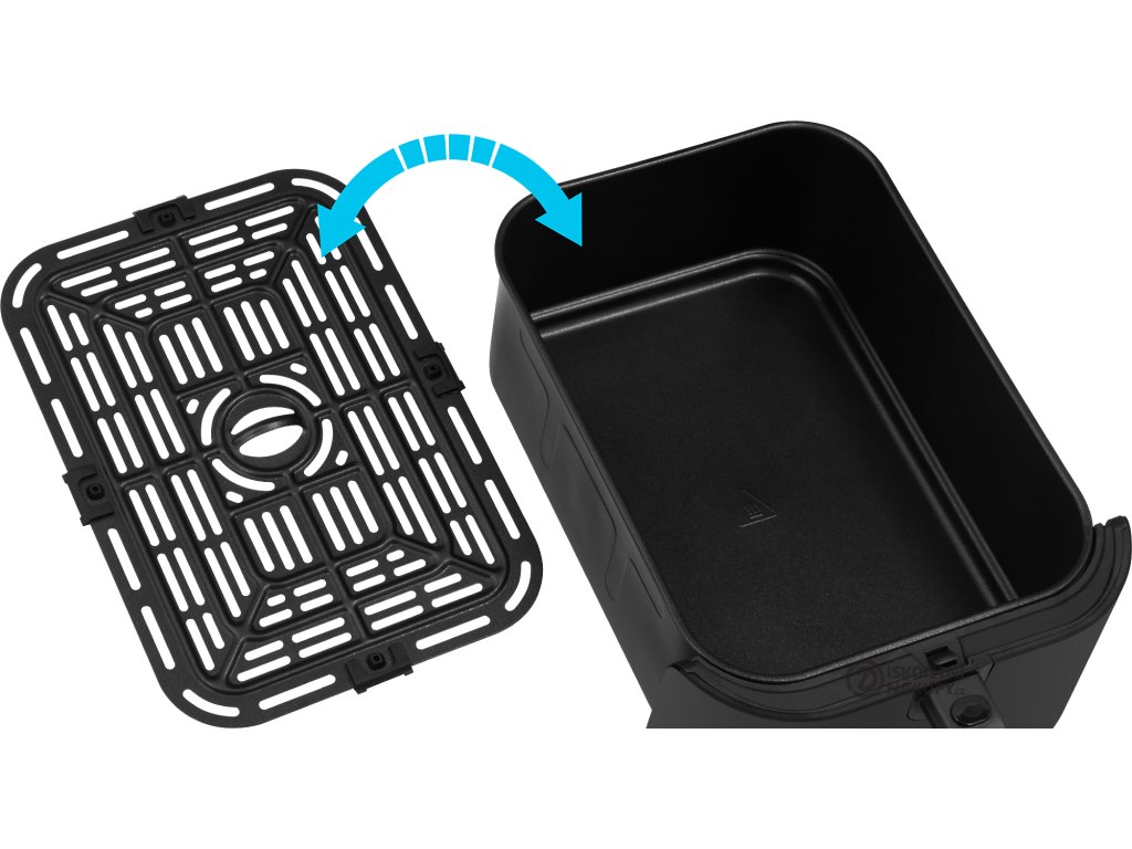 - Vyjímatelný koš s nepřilnavým roštem, který se snadno čistí