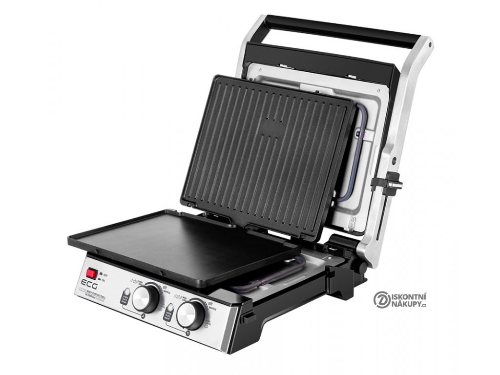 Kontaktní gril ECG je dokonale přizpůsoben požadavkům všech uživatelů. Nastavit na něm totiž můžete hned 4 pracovní pozice určené pro grilování, kontaktní a bezkontaktní zapékání a pro otevřené BBQ grilování. Kromě oboustranných desek s profilovanou a hladkou stranou navíc jako bonus najdete v balení i sadu 2 pečicích desek, které jsou určené pro přípravu vaflí.