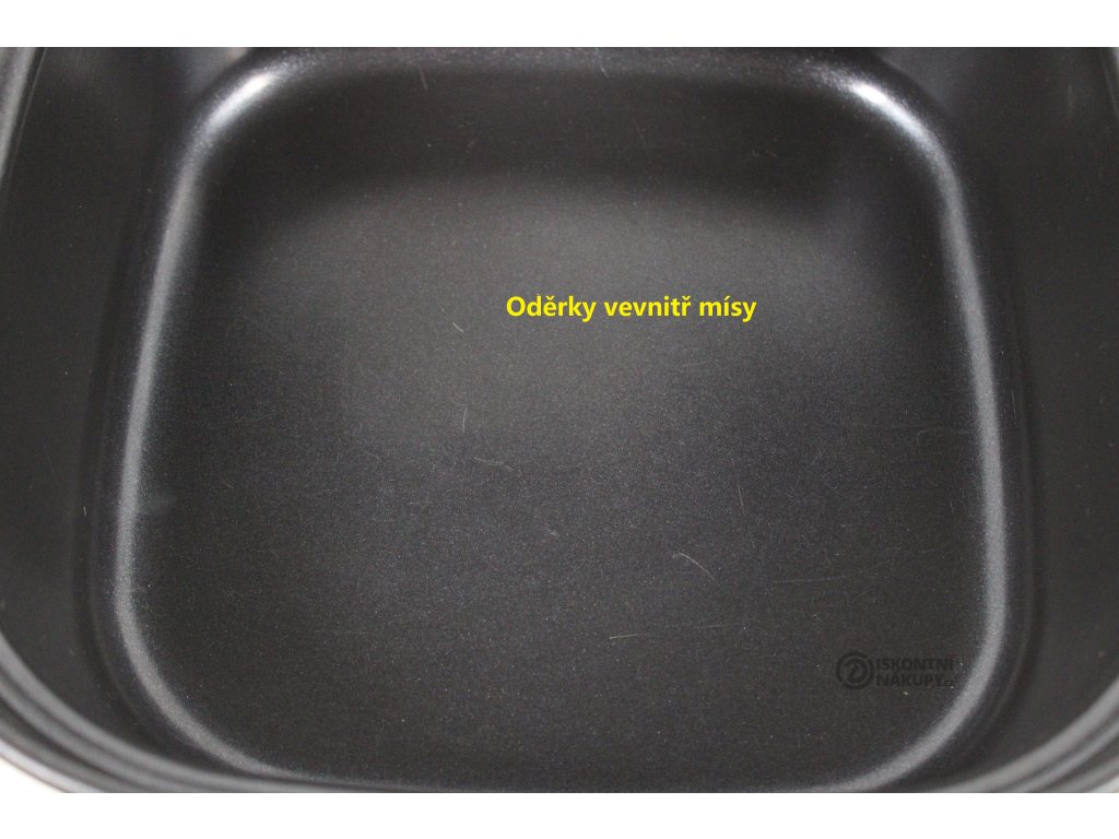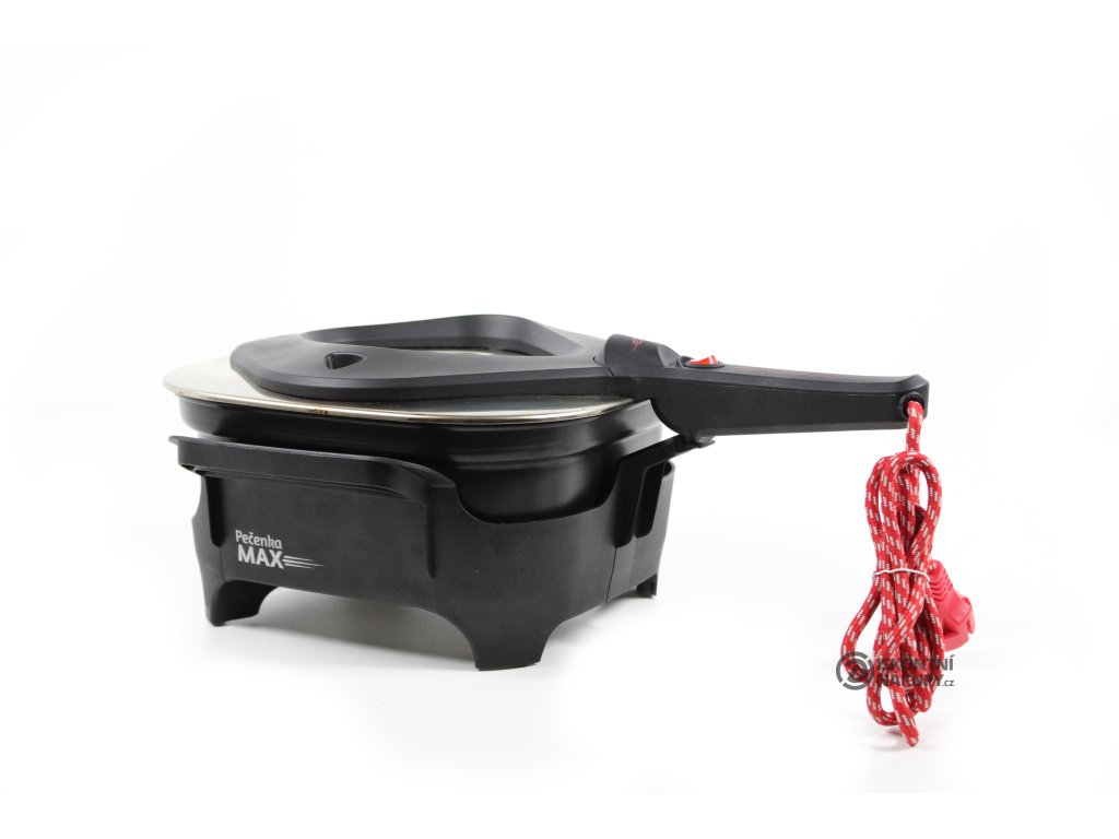 Pracovní nádoba Pečenky je z nepřilnavého teflonového materiálu, a tak se vám k ní jen tak něco nepřipeče. Oceníte i její čtvercový tvar, který je ideální při pečení buchet a dalších pokrmů. Nádoba se dá také vyjmout a uložit do lednice či jednoduše umýt. Abyste své dobroty mohli průběžně kontrolovat, je ve víku hrnce praktické skleněné okénko.
