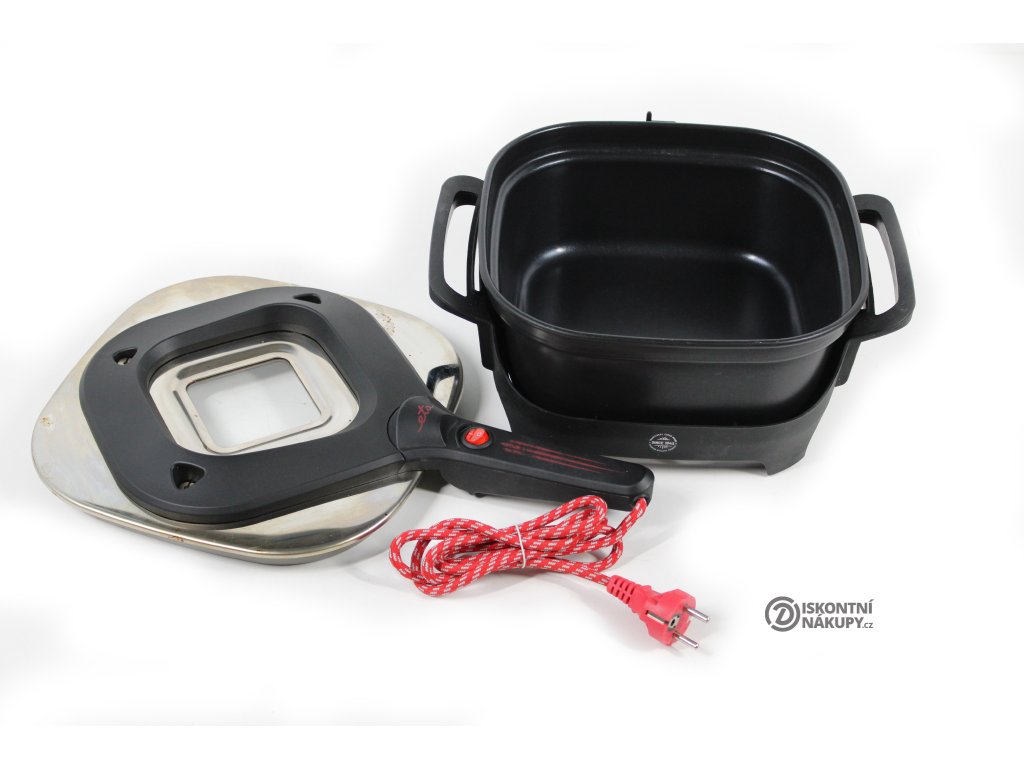 elektrický pečicí hrnec • objem 4,3 litru • max. příkon 475 W • funkce: vaření, dušení, pečení, zapékání a udržování ideální teploty • bohaté příslušenství: středová forma, grilovací rošt, 5ks nerezových jehel, ochranné víko • signalizace provozu • pracovní plocha a víko z nepřilnavého materiálu • tepelně izolovaná držadla • průhledné víko • vyjímatelná nádoba • snadné čištění • kabel o délce 1,5 metru • bezpečnostní pojistka proti špatnému sestavení • rozměr nádoby (V × Š × H): 27,7 × 27,7 × 11,2 mm