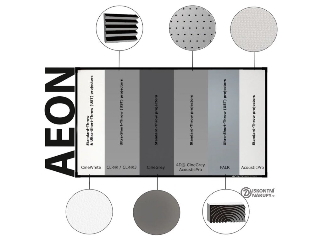 - Série Aeon Edge Free - bezrámové/bezokrajové projekční plátno v pevném rámu