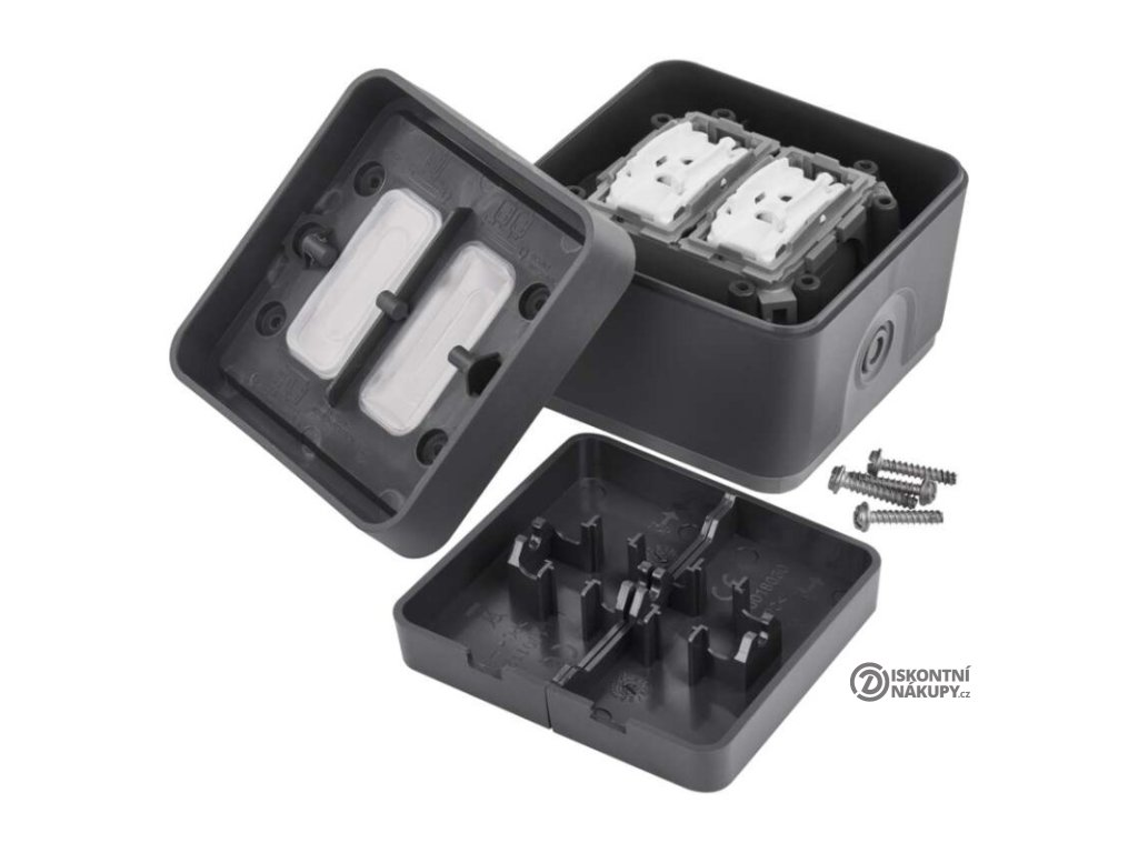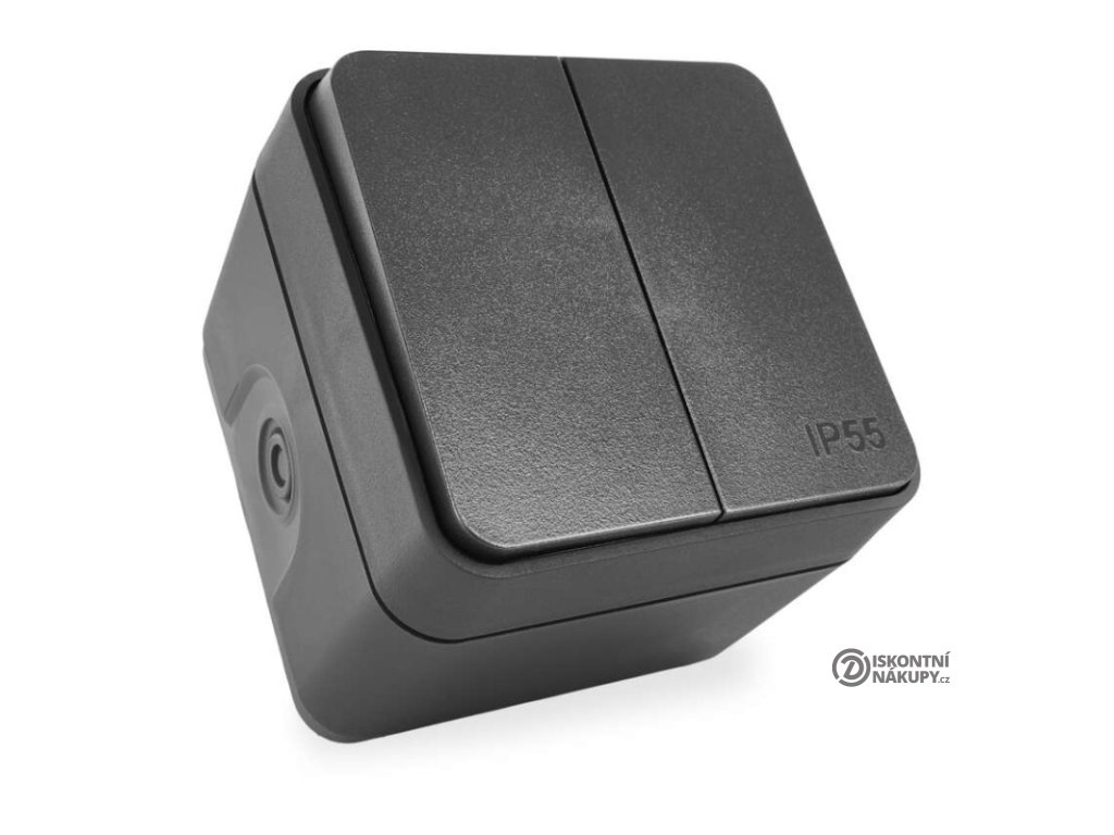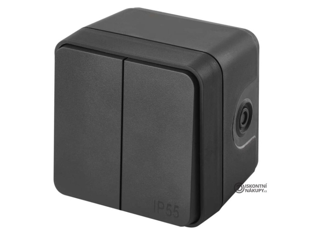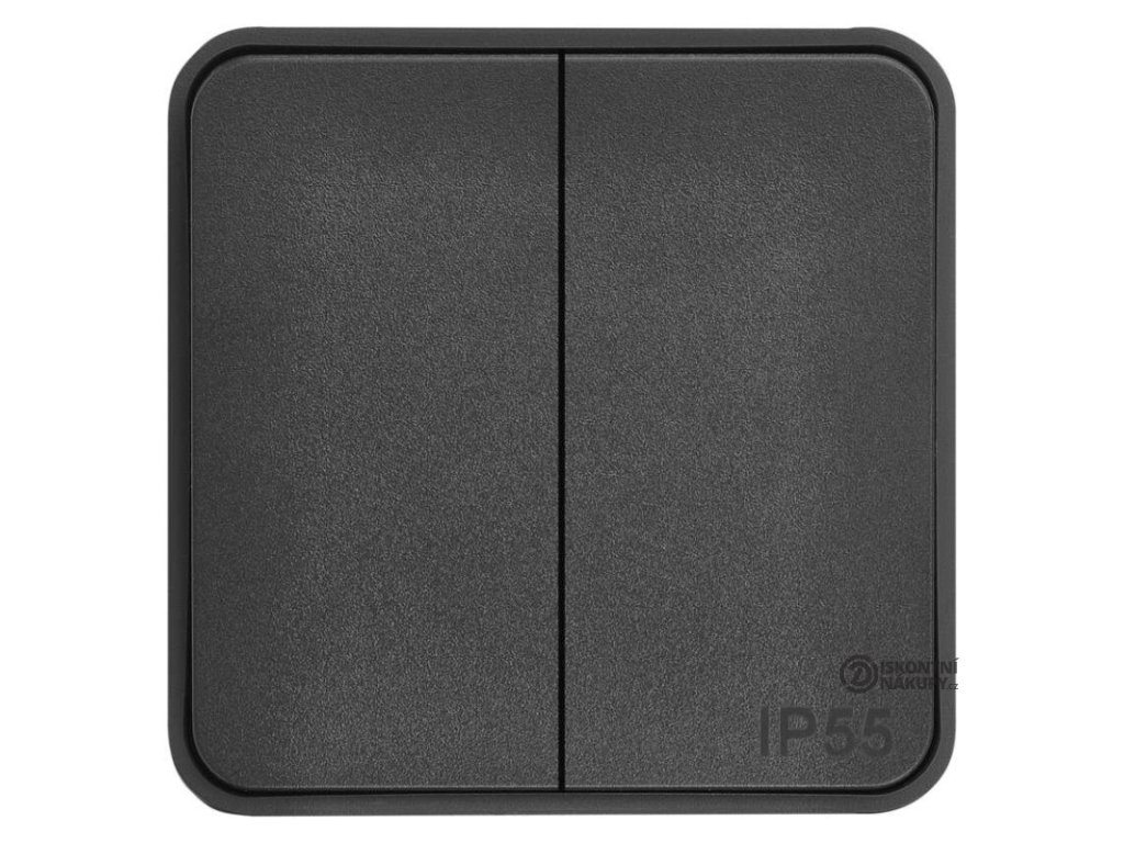 barva: šedá|design: Cyklone|krytí: IP55|napětí: 250 V~/10 AX|podsvětlení: ne|prodejní obal: 1 ks|produkt: dvojitý přepínač střídavý č. 6+6 (5B)|proud: 10 AX|provedení: 2 tlač. voděodolný|typ připojení: automatická svorka|značka: DEBFLEX|způsob montáže: na stěnuDoplňkové parametry