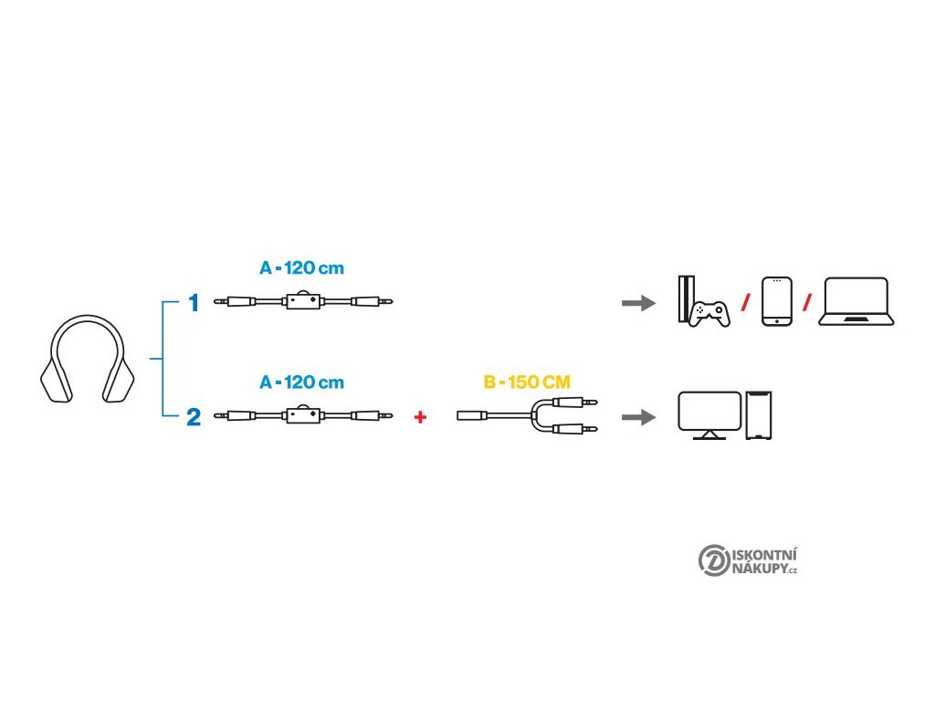 Konektor: 1× 3,5 mm jack & redukce na 2× audio jack