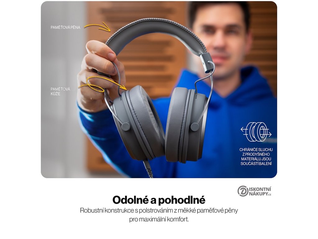 Ergonomický design a měkké polstrování zajišťují pohodlí i při hodinách hraní. Sada obsahuje náhradní pár náušníků z prodyšného materiálu, ideální pro teplejší dny nebo intenzivní používání.