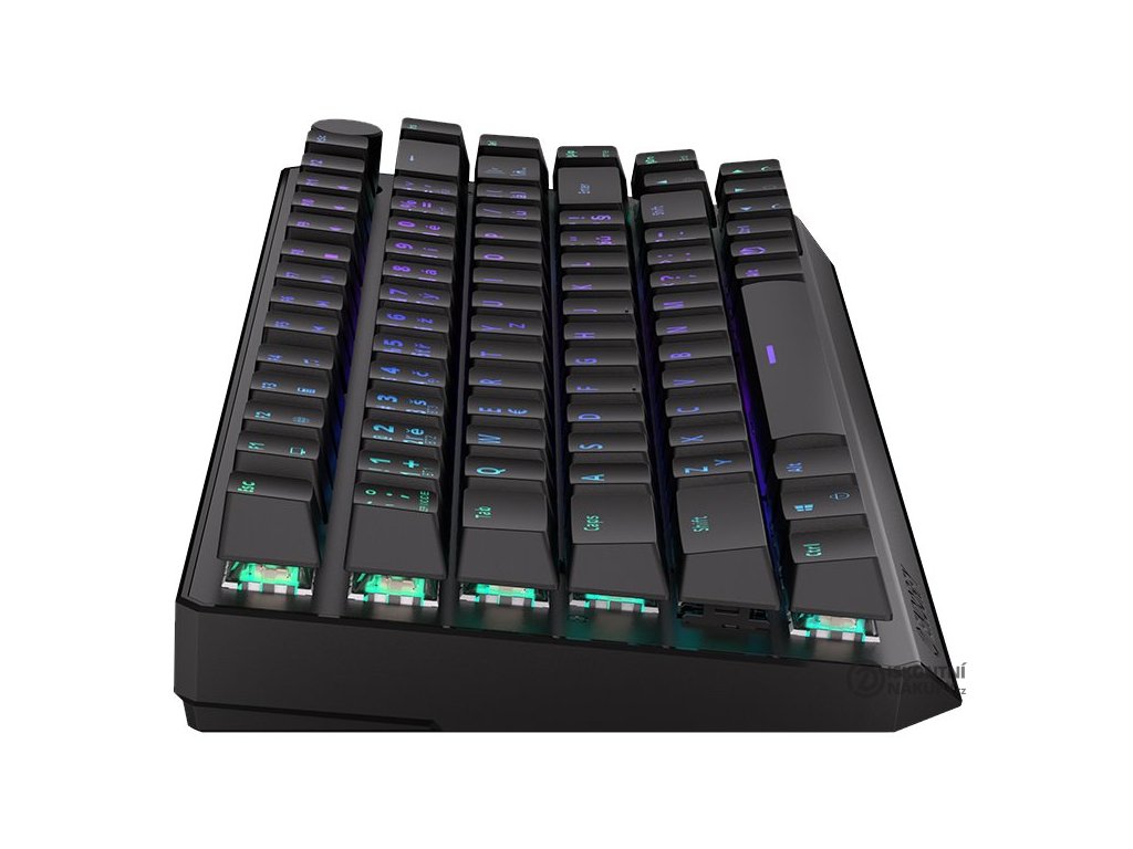 Bezdrátová mechanická herní klávesnice je vybavena spínači Kailh Black s perfektní odezvou a životností až 70 milionů stisků. Klávesy jsou ARGB podsvícené a nabízí možnost vlastního nastavení. Klávesy jsou navíc také plně programovatelné, díky tomu lze klávesnici individualizovat přesně podle potřeb hráče a hrané hry. Samozřejmě nechybí ani funkce Anti-Ghosting a N-Key rollover. Připojení k počítači lze realizovat jak bezdrátově skrze Bluetooth či miniaturní USB přijímač a technologii 2,4 GHz, tak i drátově pomocí USB kabelu, který slouží zároveň pro nabíjení.