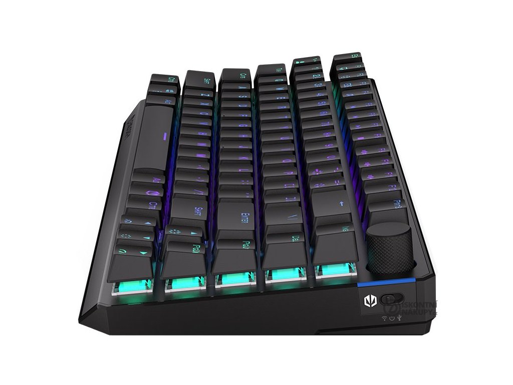 Endorfy Thock 75% Wireless RedBezdrátová mechanická herní klávesnice je vybavena spínači Kailh Red s perfektní odezvou a životností až 70 milionů stisků. Klávesy jsou ARGB podsvícené a nabízí možnost vlastního nastavení. Klávesy jsou navíc také plně programovatelné, díky tomu lze klávesnici individualizovat přesně podle potřeb hráče a hrané hry. Samozřejmě nechybí ani funkce Anti-Ghosting a N-Key rollover. Připojení k počítači lze realizovat jak bezdrátově skrze Bluetooth či miniaturní USB přijímač a technologii 2,4 GHz, tak i drátově pomocí USB kabelu, který slouží zároveň pro nabíjení.